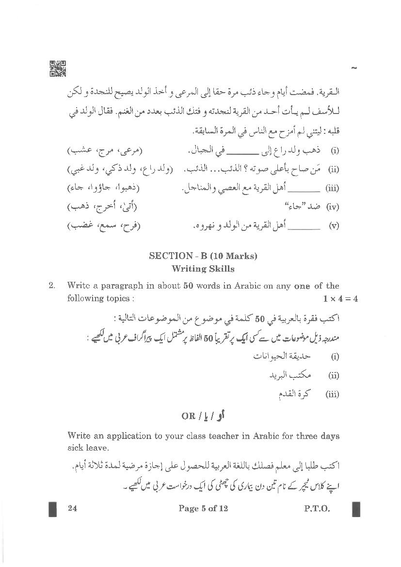 CBSE Class 10 Arabic Question Paper 2026