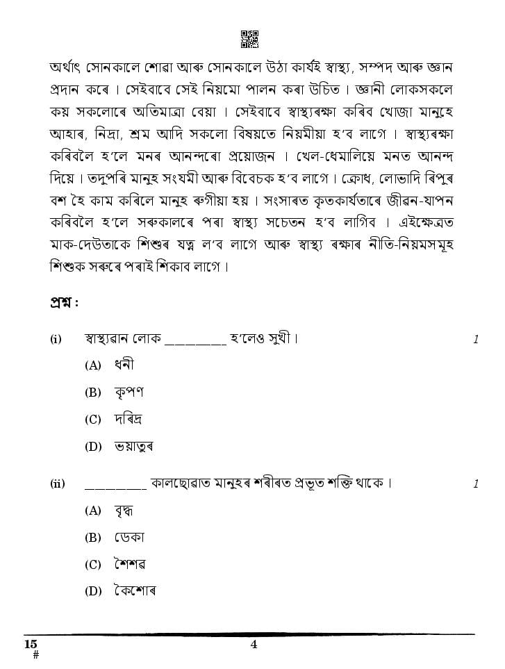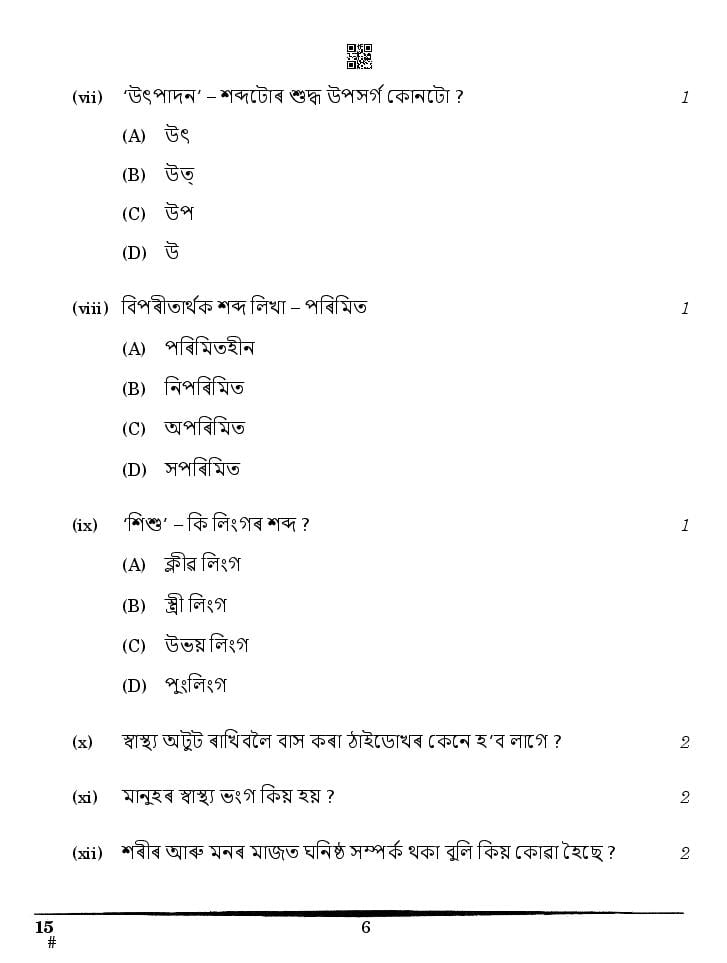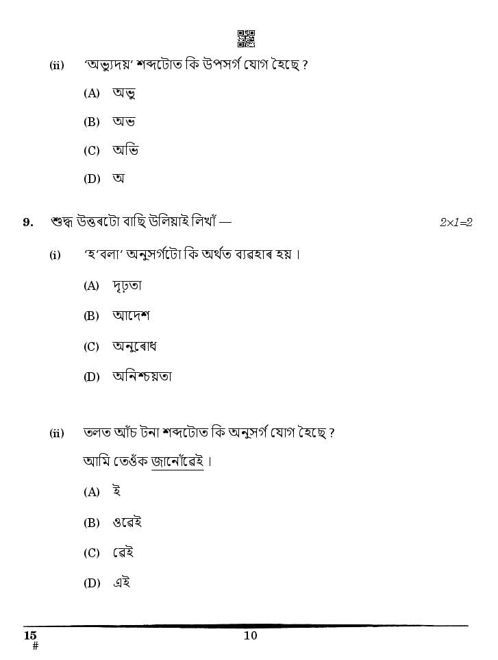 CBSE Class 10 Question Paper 2025 Assamese View Download