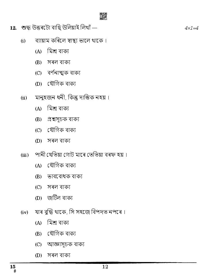 | Subject | Assamese |