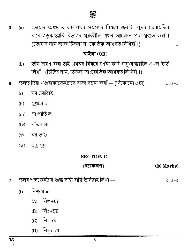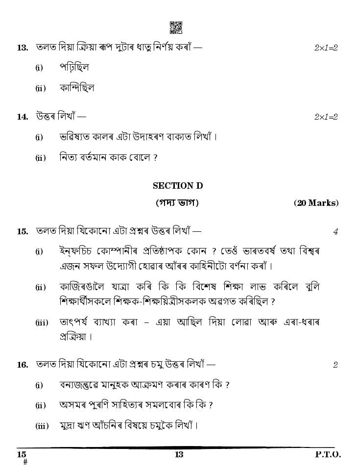 | Study Material Here | CBSE Class 10 Assamese Previous Year Question Paper |