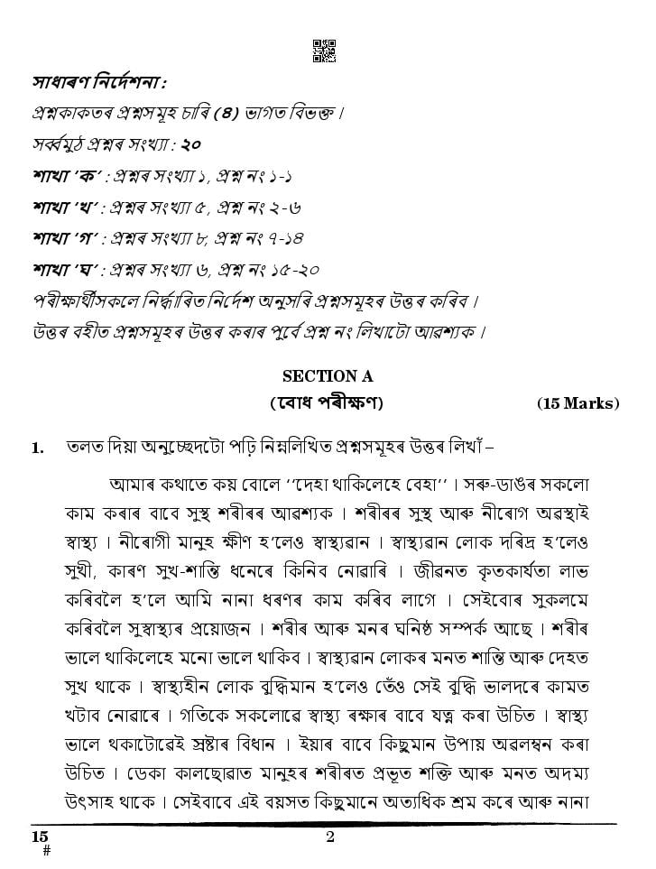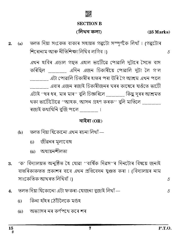 The CBSE question paper for class 10 Assamese of the exam held in past years is as follows.