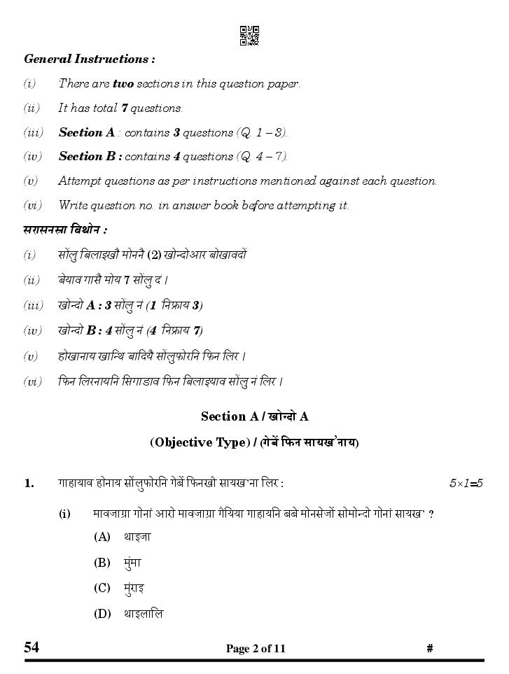 | Study Material Here | CBSE Class 10 Bodo Previous Year Question Paper |