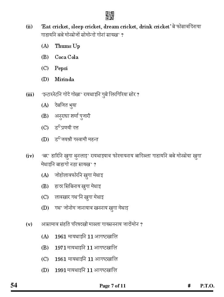 The complete Bodo question paper is as follows. You can read all questions asked in last year’s test here at aglasem.com.