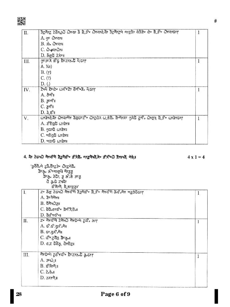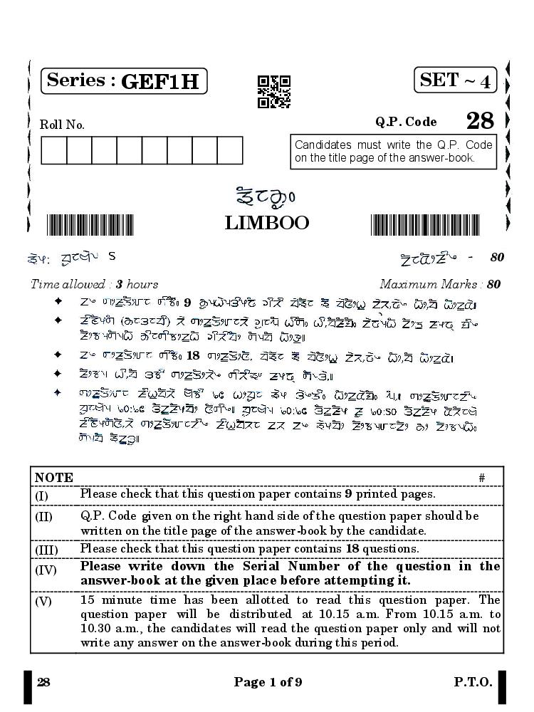 The CBSE question paper for class 10 Limboo of the exam held in past years is as follows.