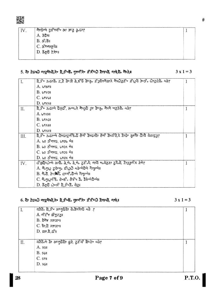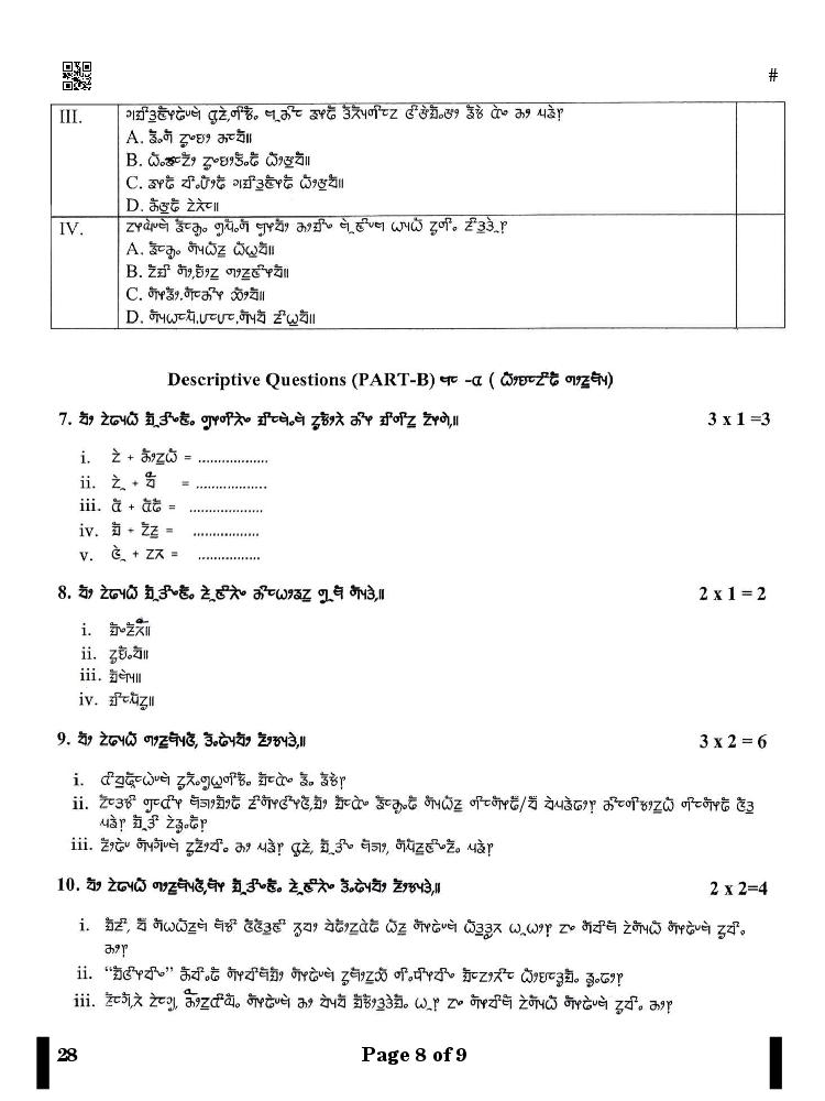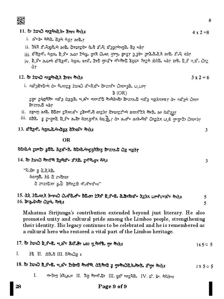 More Class 10 Limboo Question Paper