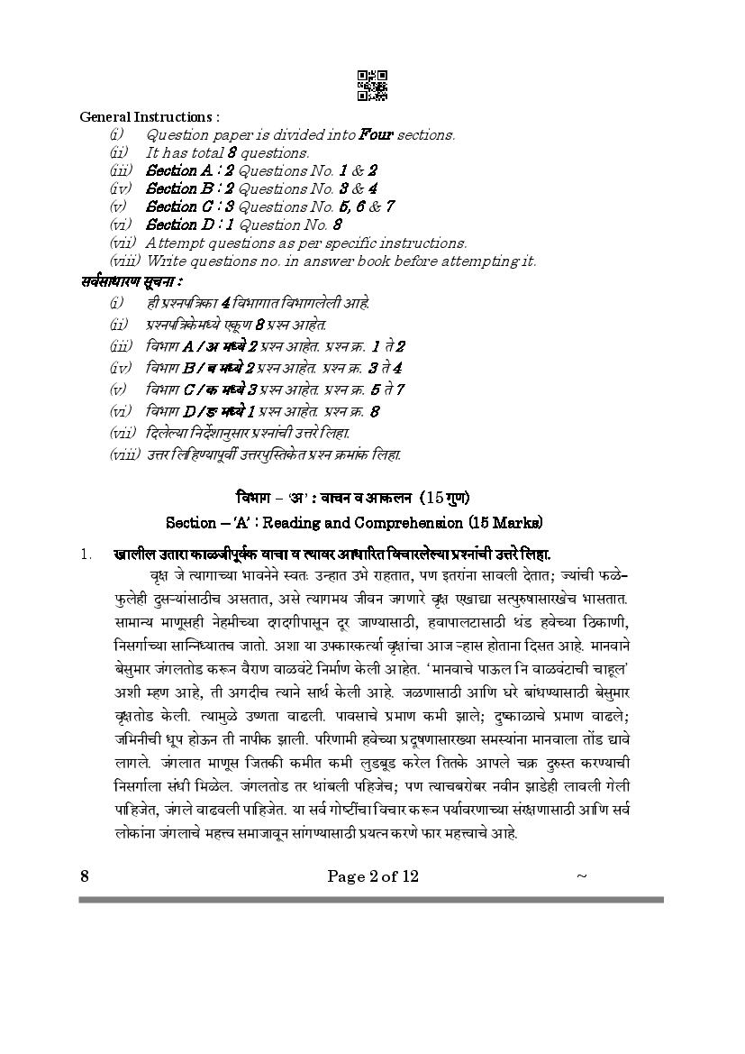The CBSE question paper for class 10 Marathi of the exam held in past years is as follows.