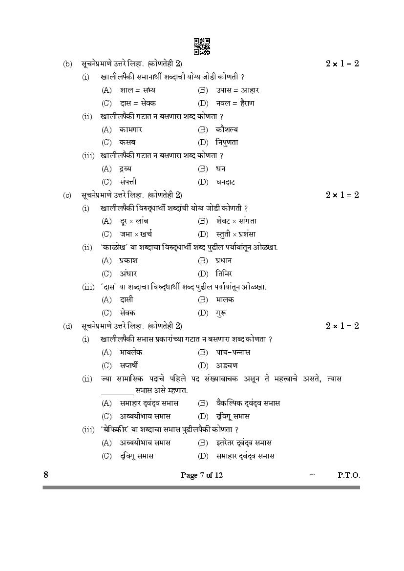 CBSE Class 10 Question Paper 2025 Marathi View Download