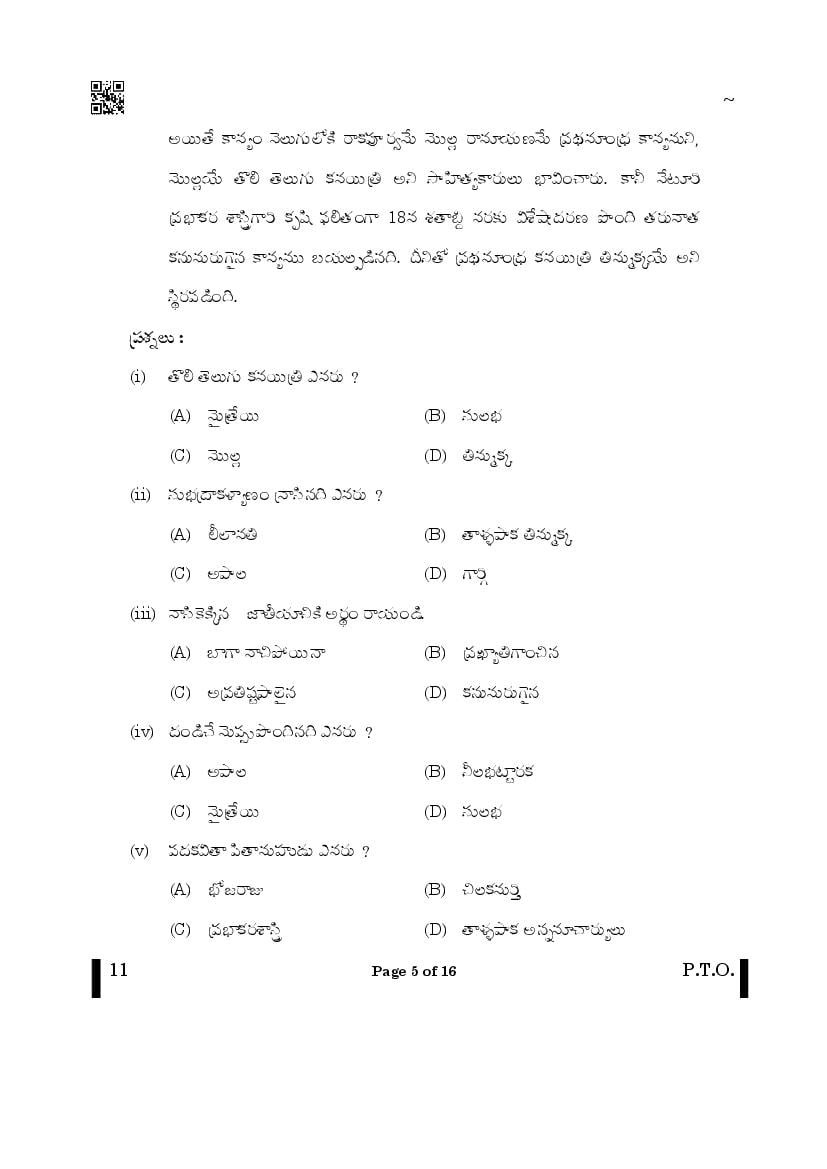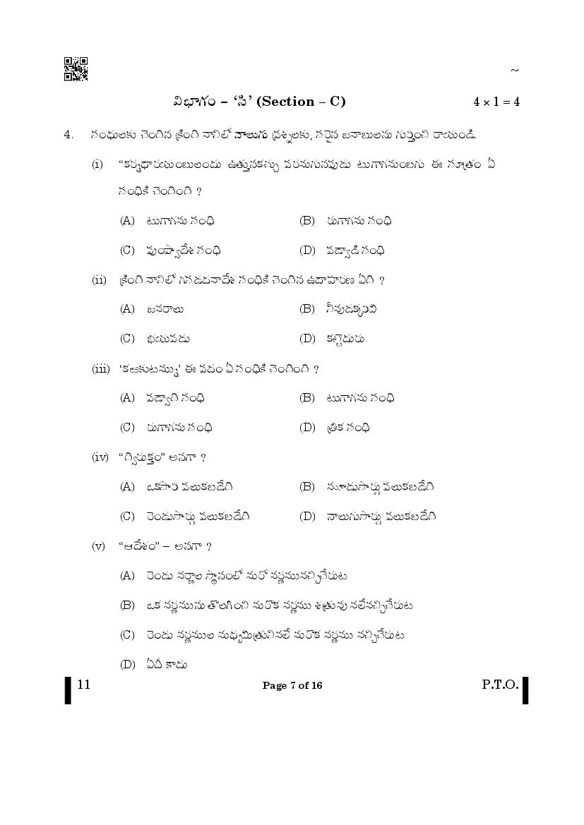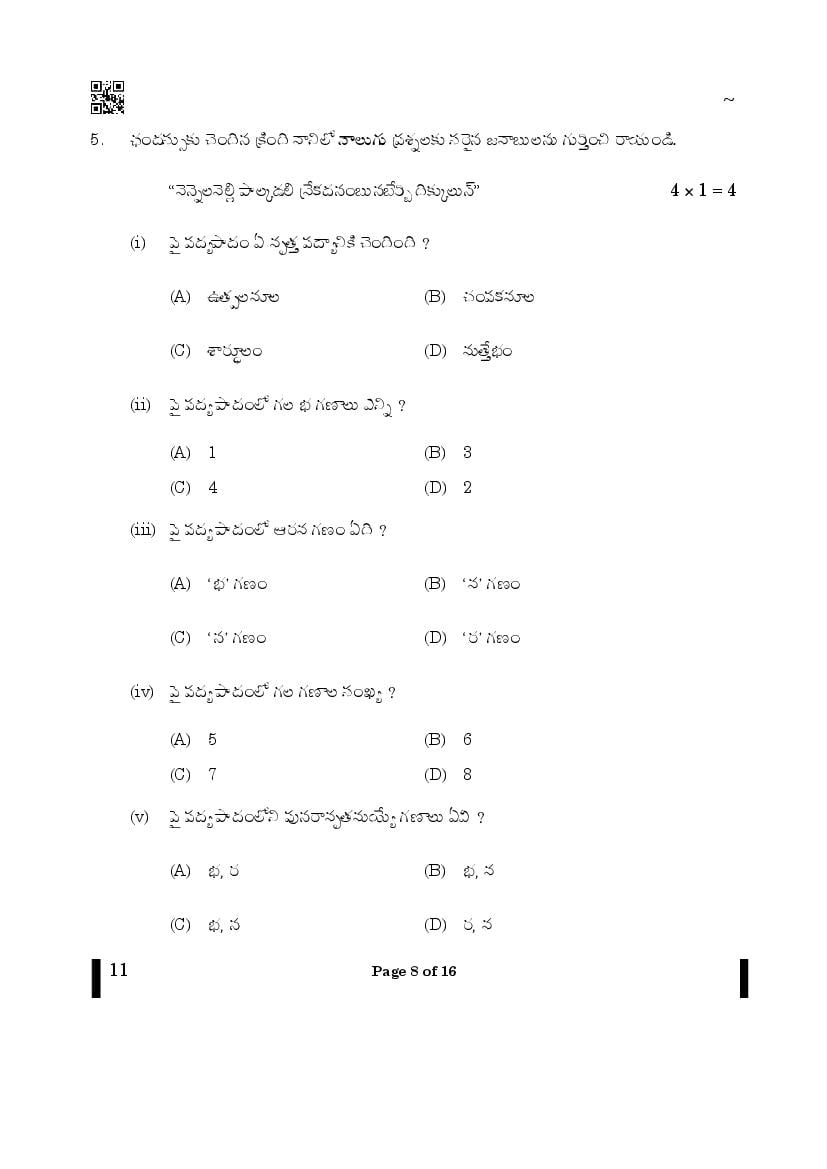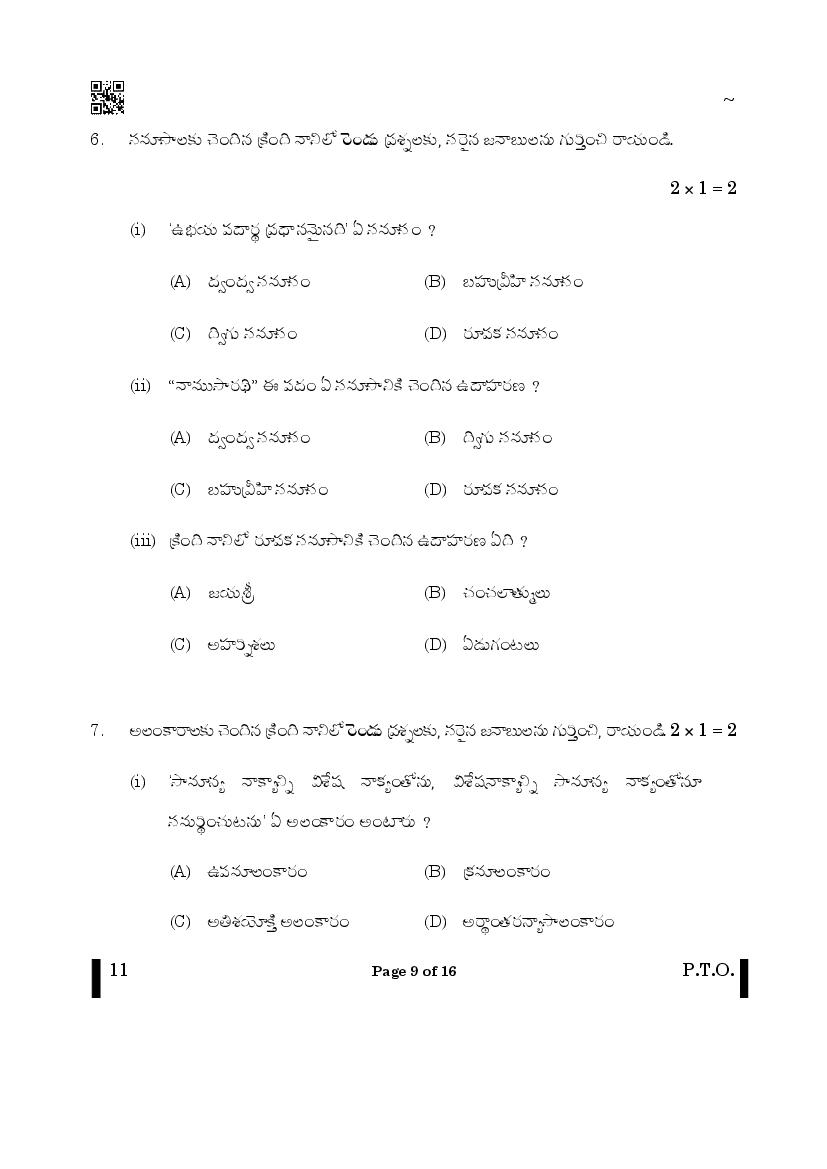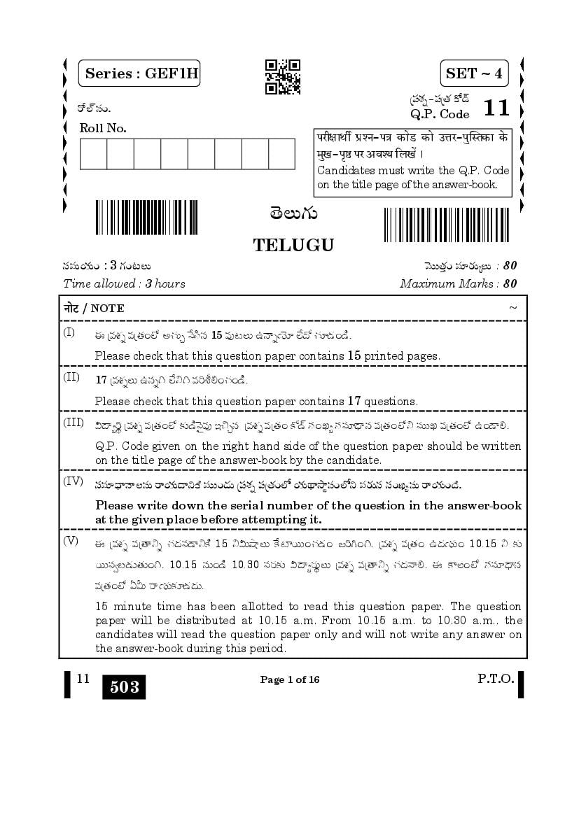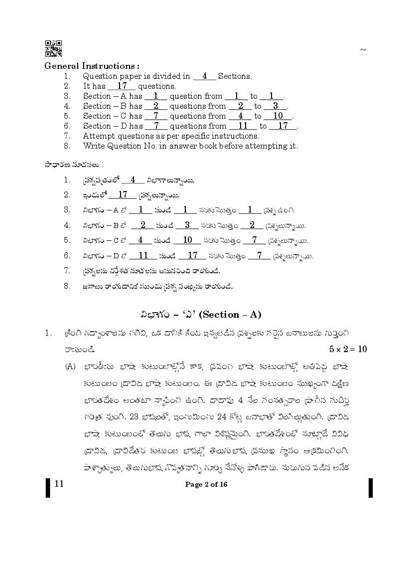 The CBSE question paper for class 10 Telugu of the exam held in past years is as follows.