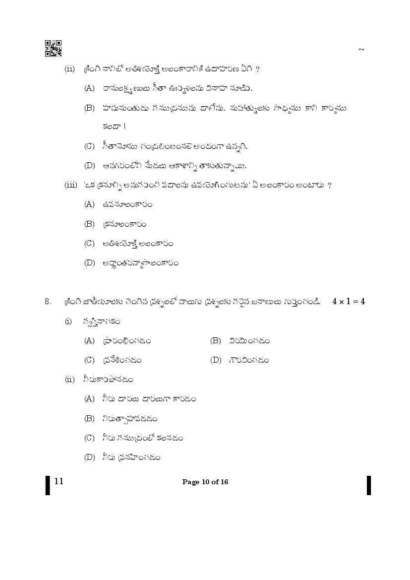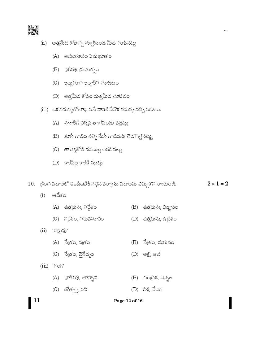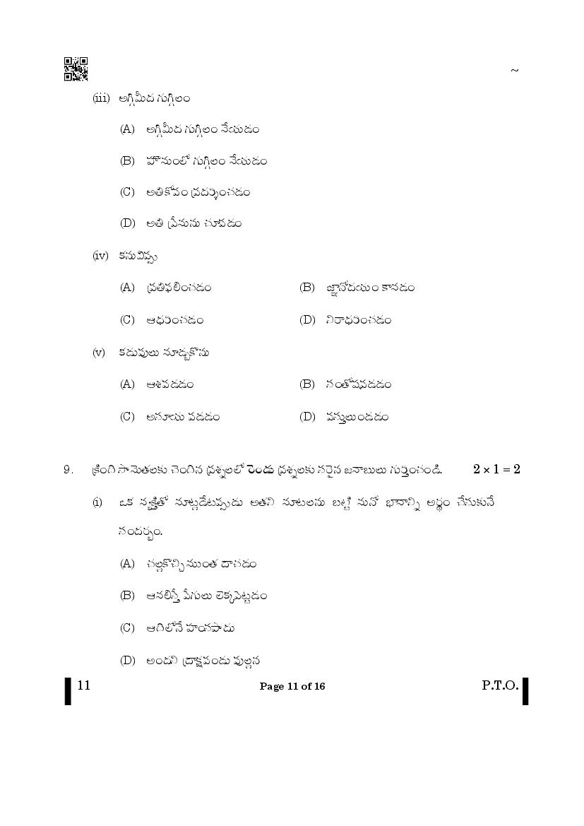 CBSE Class 10 Question Paper 2025 Telugu View Download