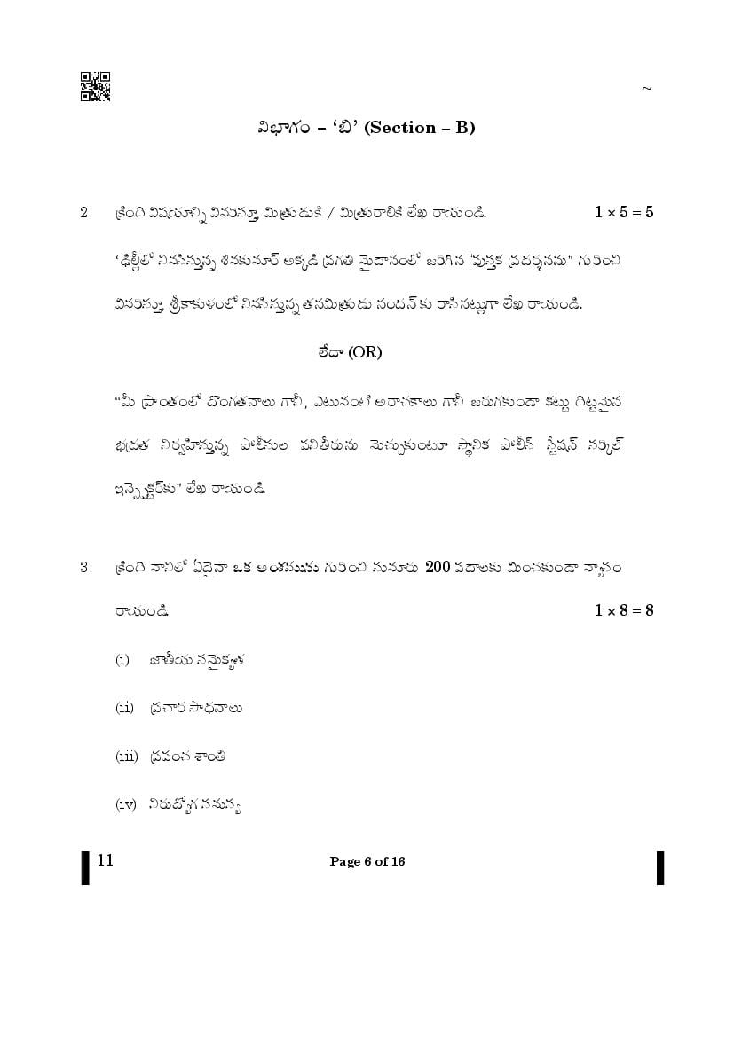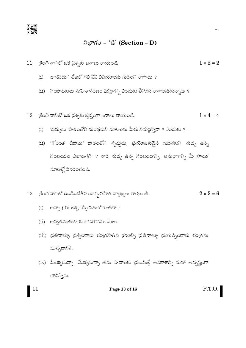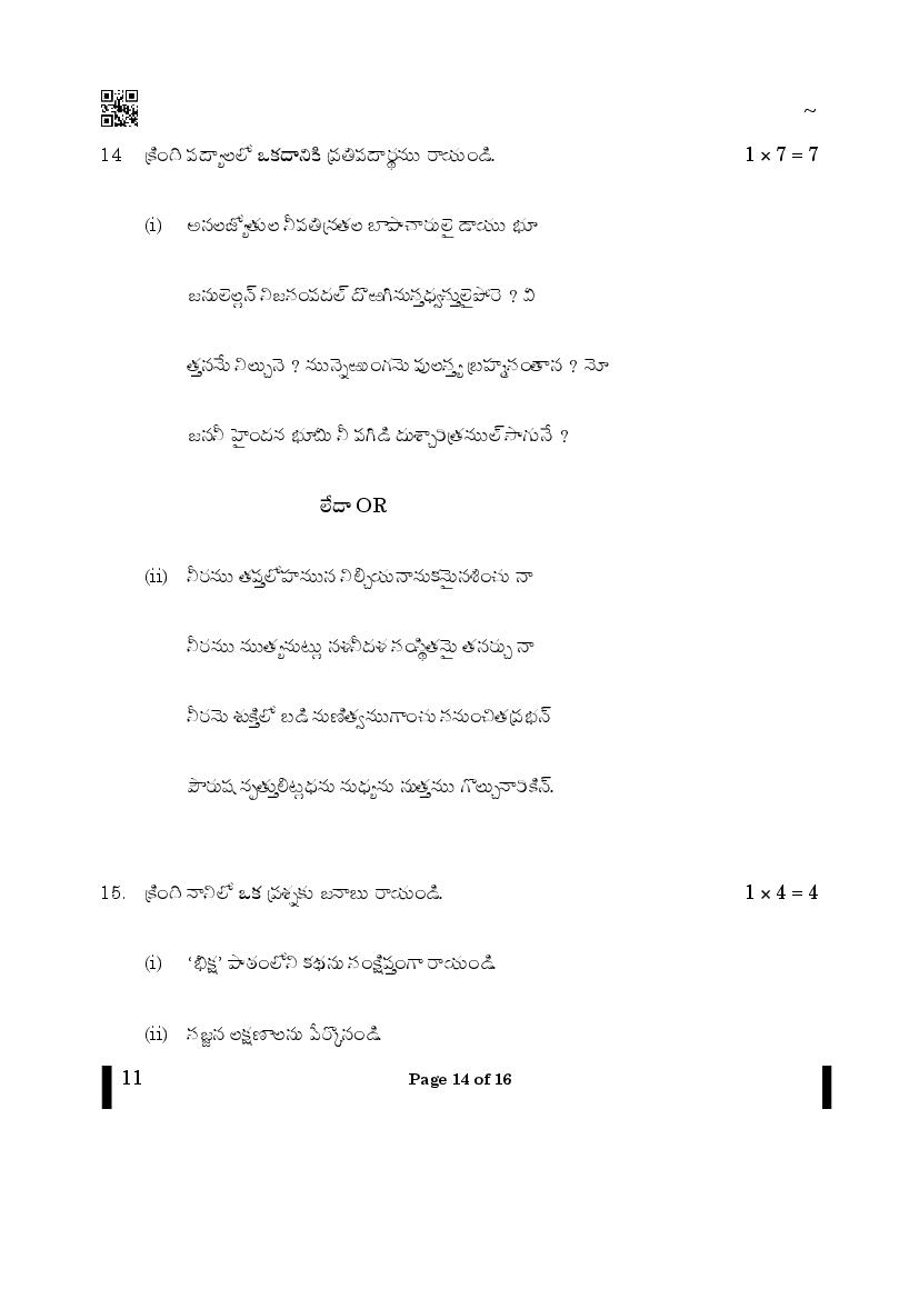 CBSE Class 10 Telugu Question Paper 2026