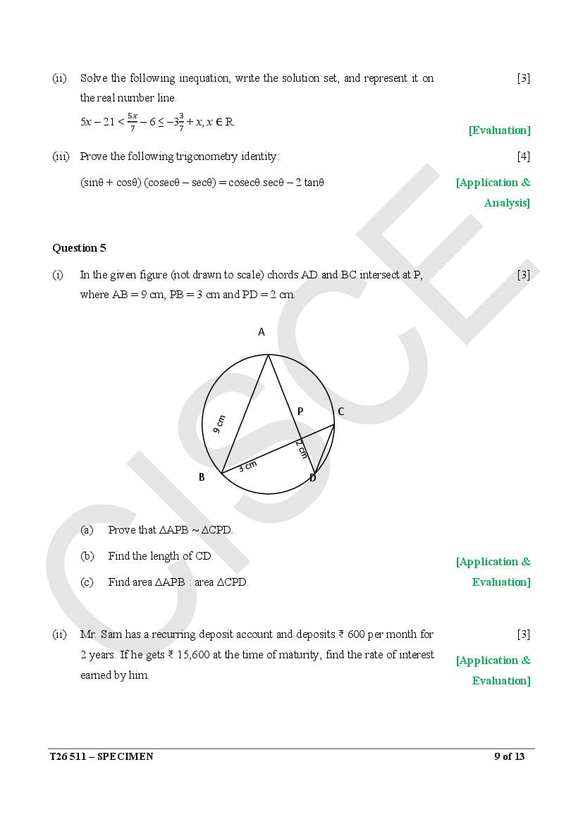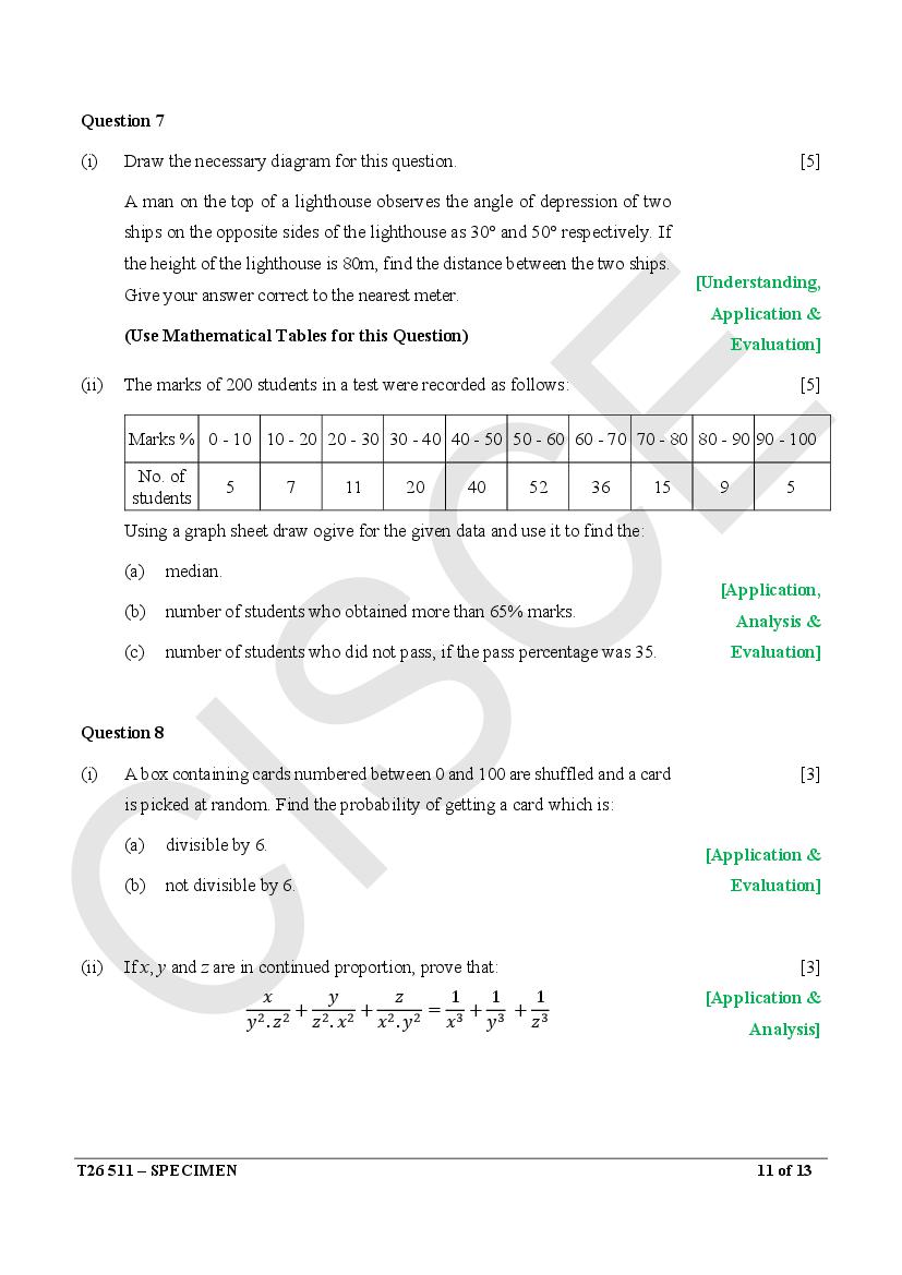 - ICSE Class 10 Specimen Papers