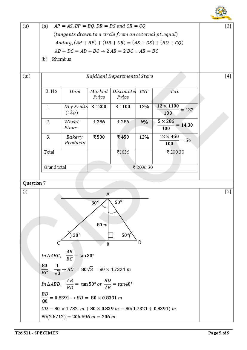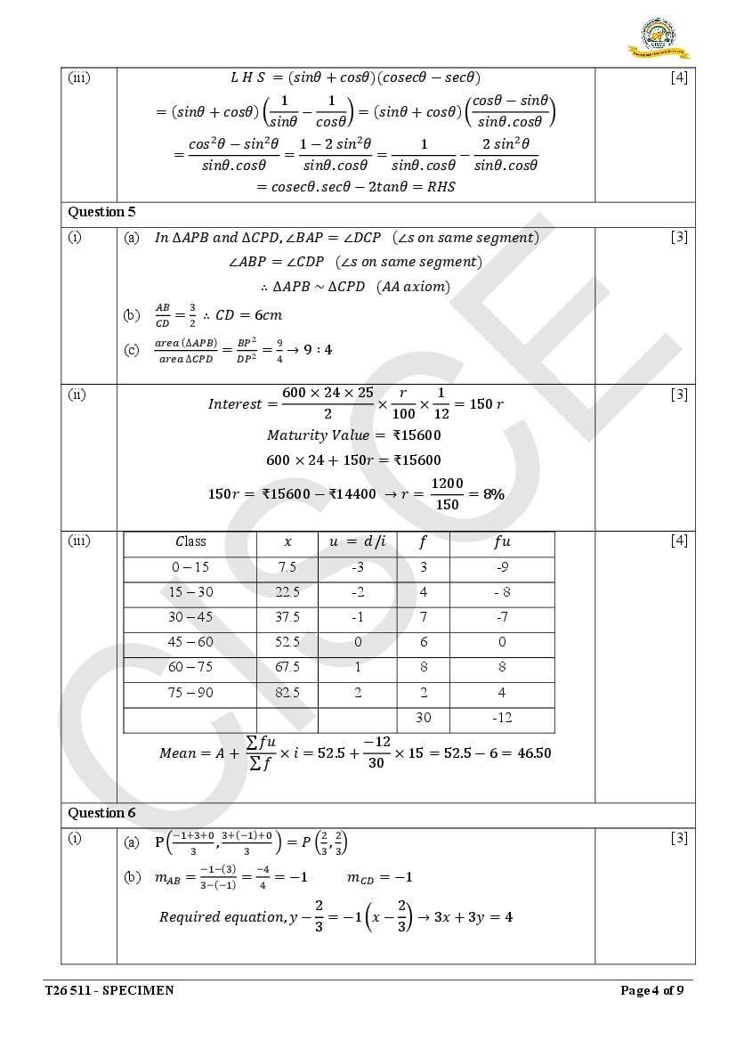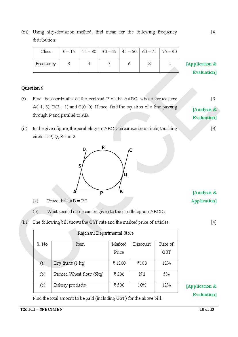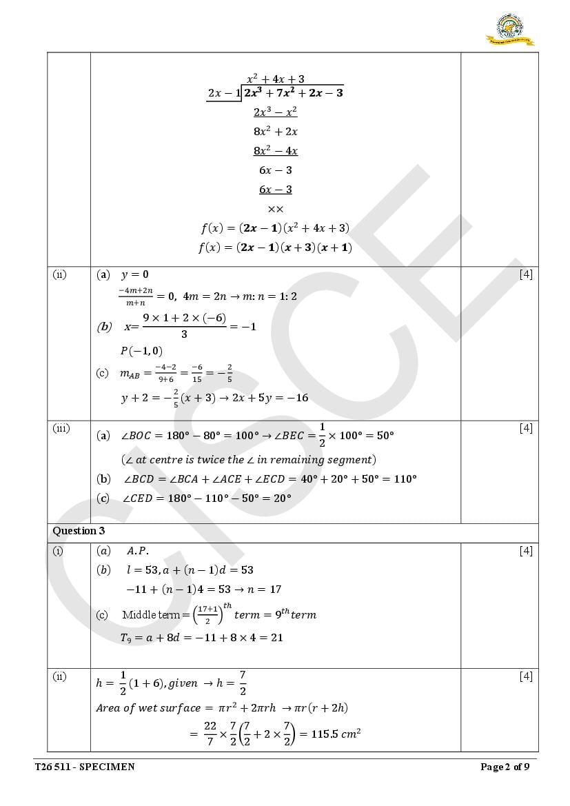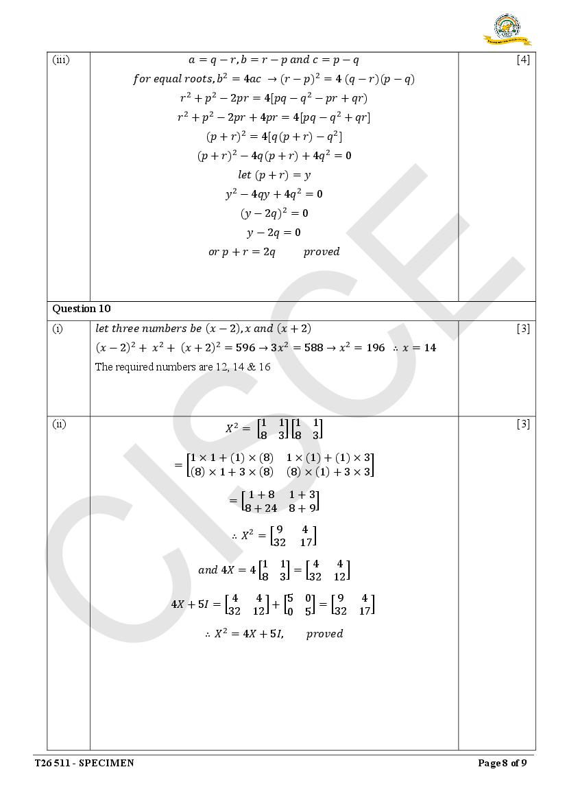 Are you looking for specimen paper of Mathematics class 10 ICSE 2026 solved?