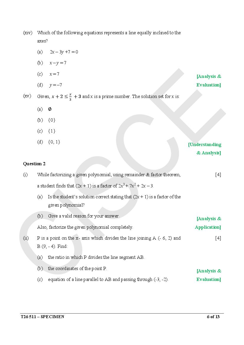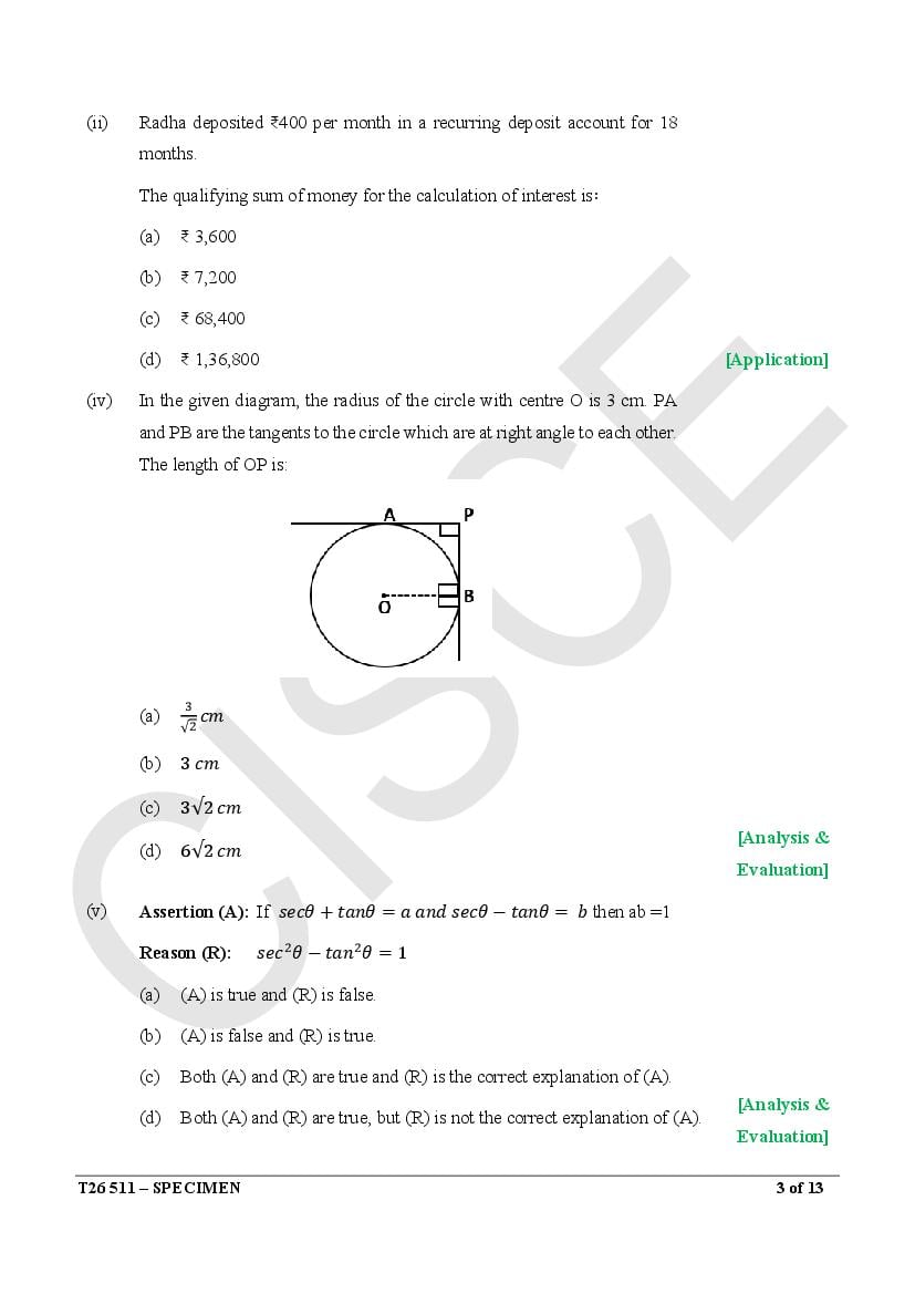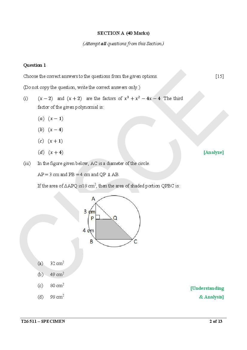 ICSE Mathematics Specimen Paper 2026