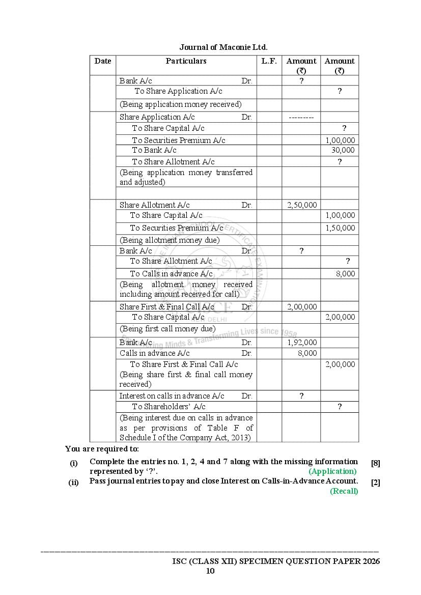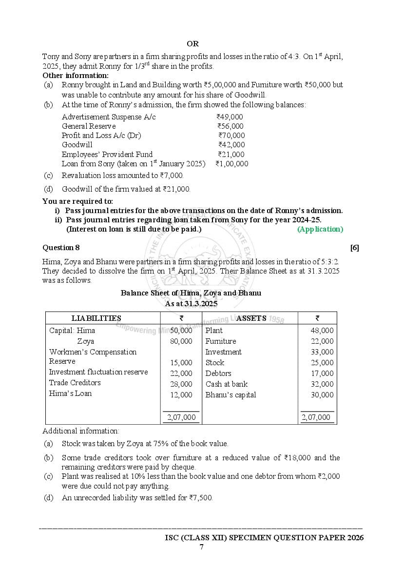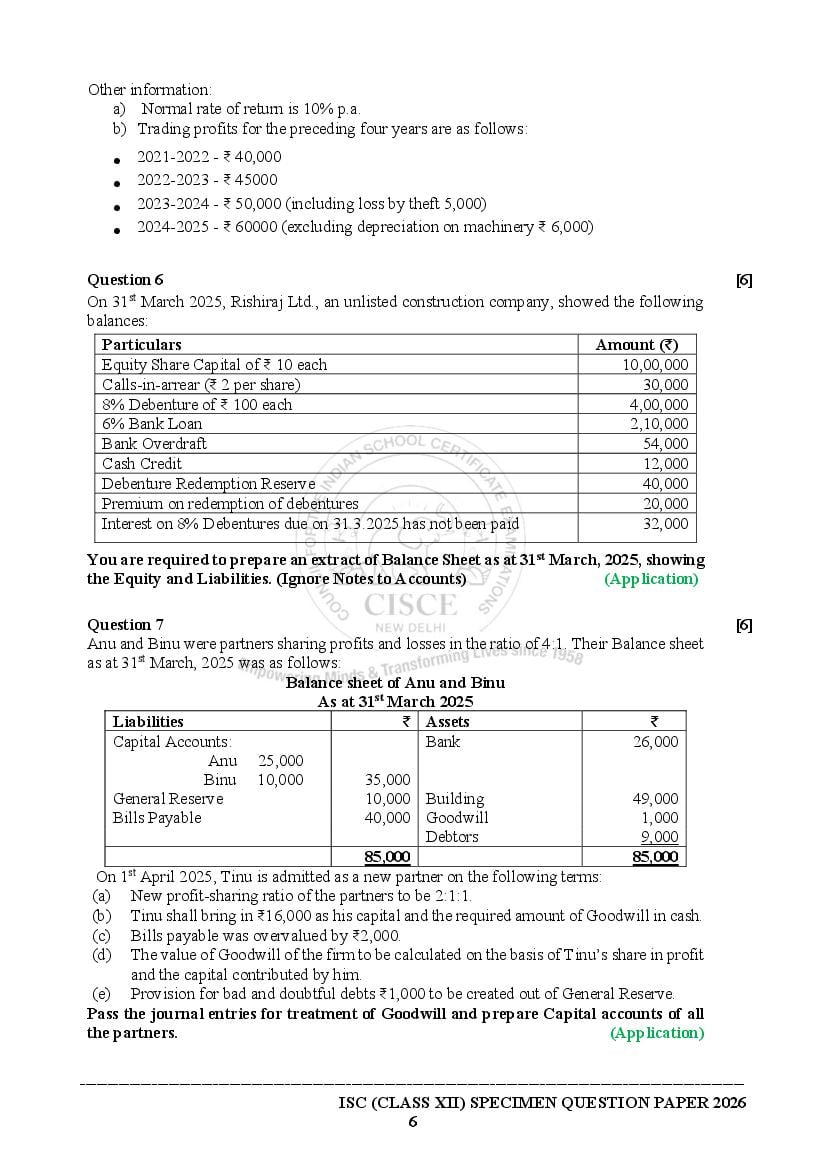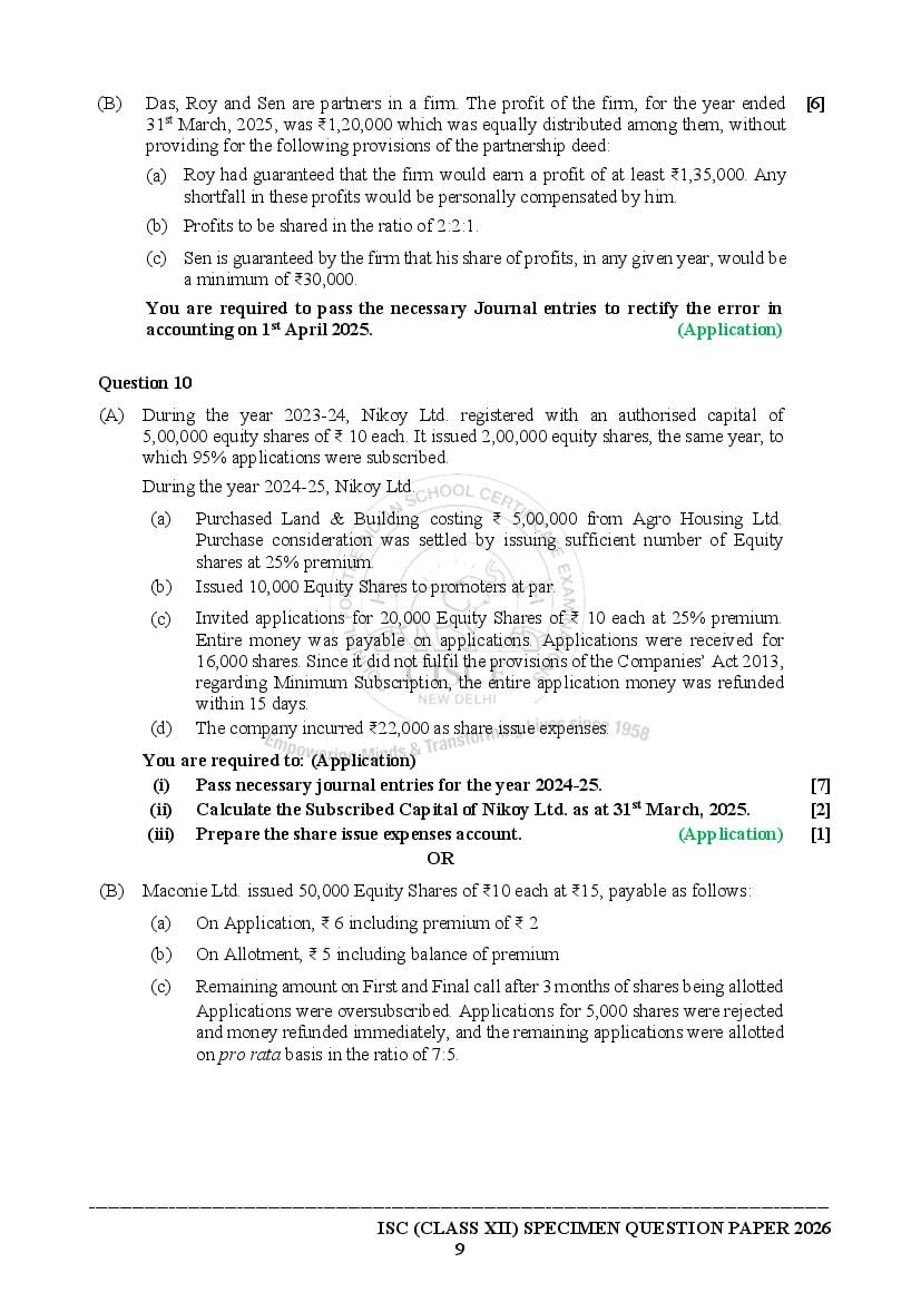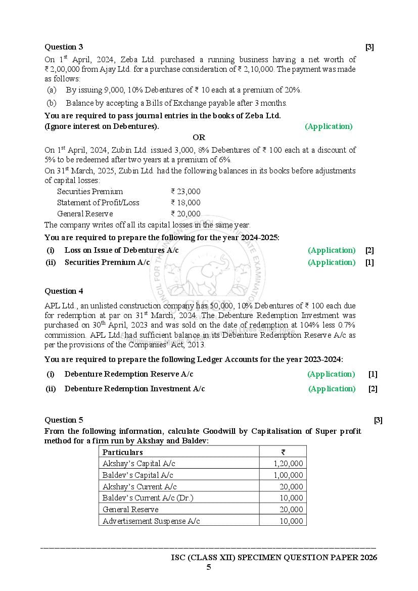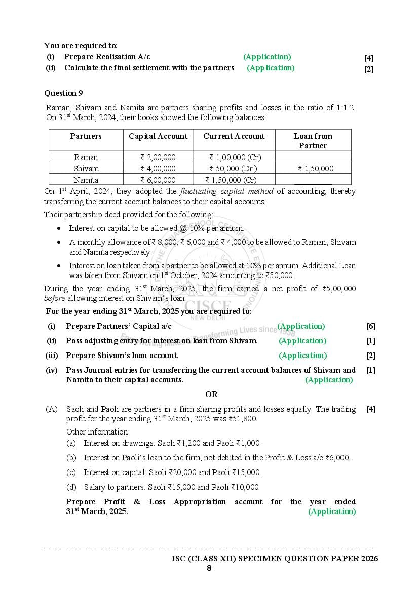 - Open the ISC Accounts textbook and then solve the Accounts specimen paper 2026 ISC.