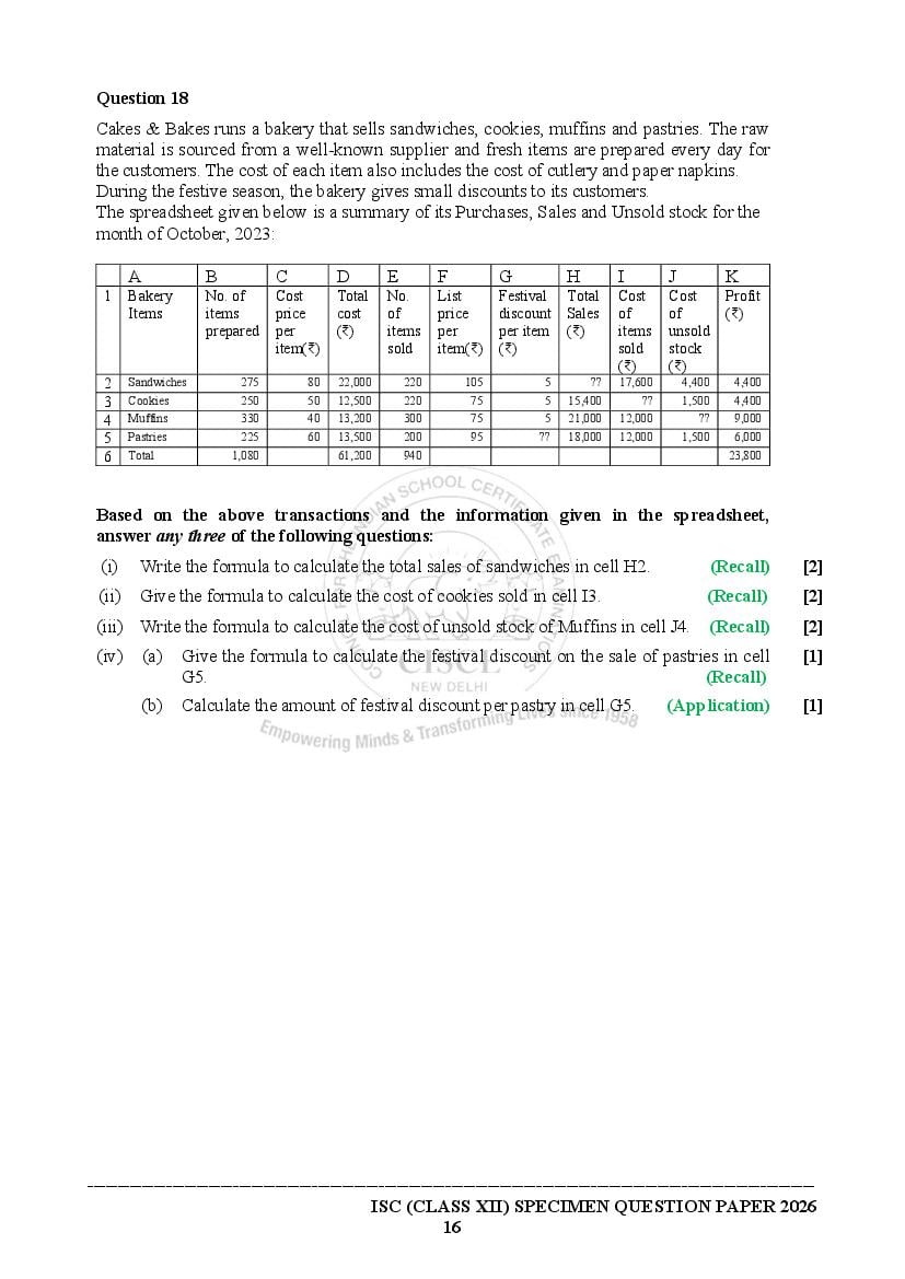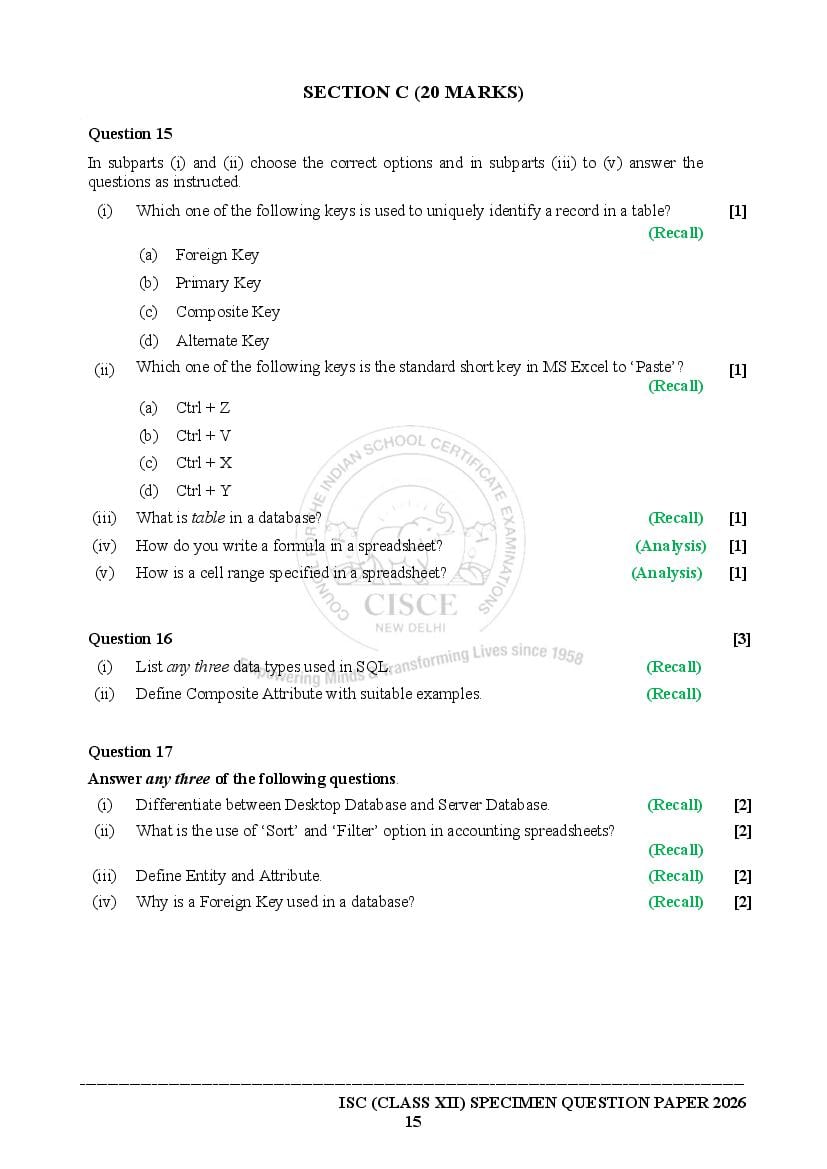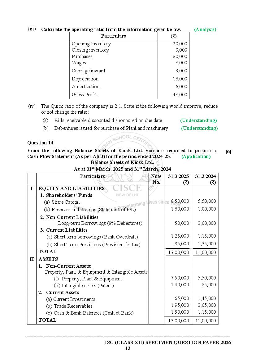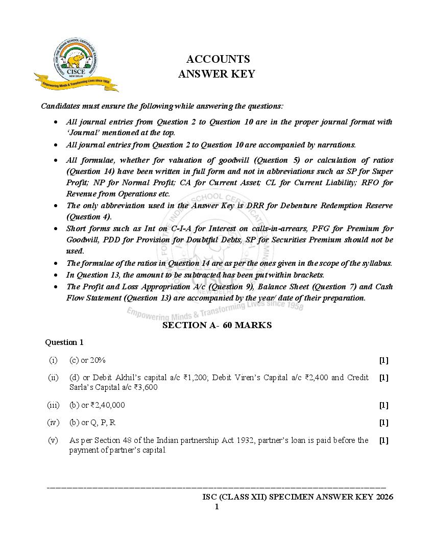 The specimen paper for ISC 2026, for Accounts is now available. The direct link to download PDF of this ISC specimen paper 2026 is as follows.