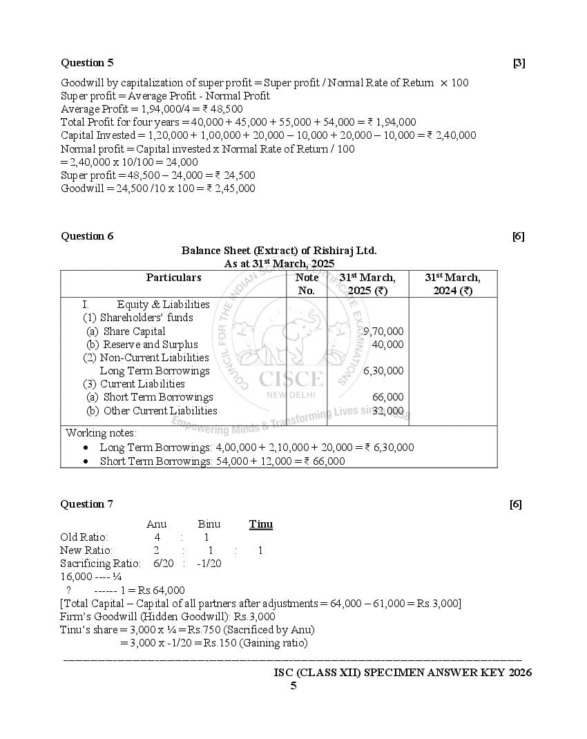 If you have any queries on ISC Accounts Specimen Paper 2026, then please ask in comments below.