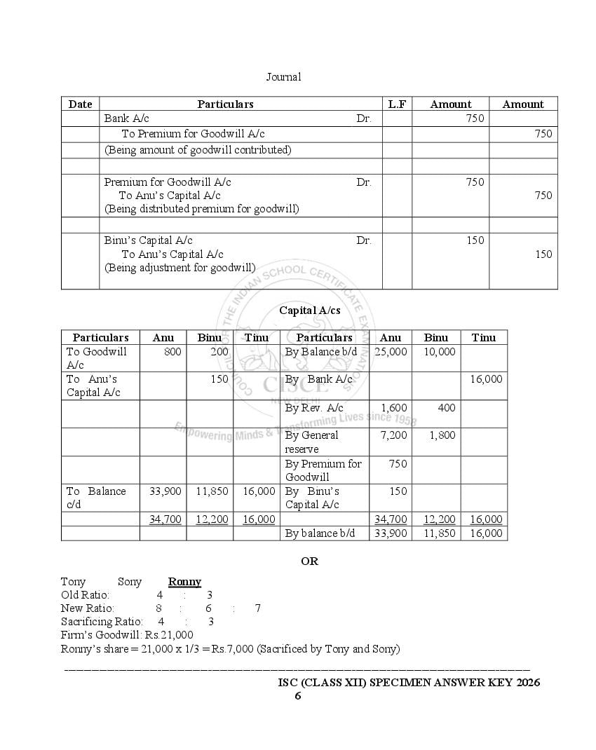 - Or, referred to solved specimen paper for ISC 2026 class 12 by coaching centers who specifically focus on Accounts.