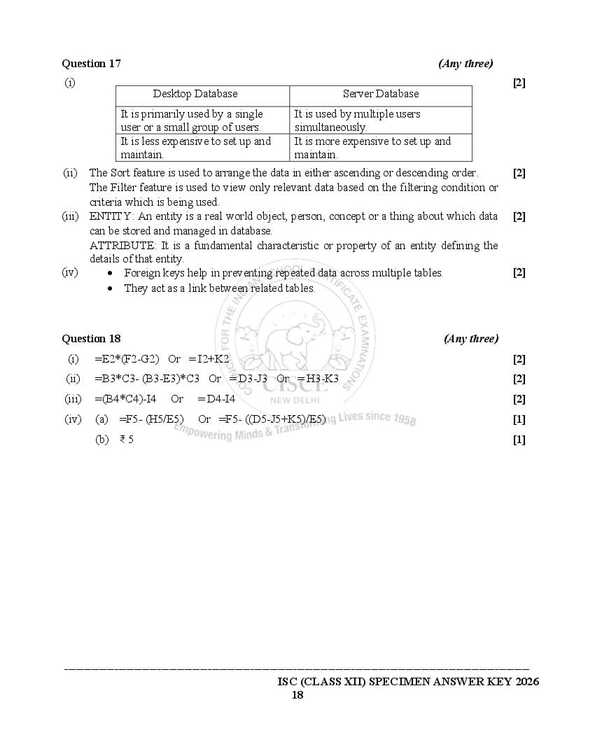 ISC Specimen Papers