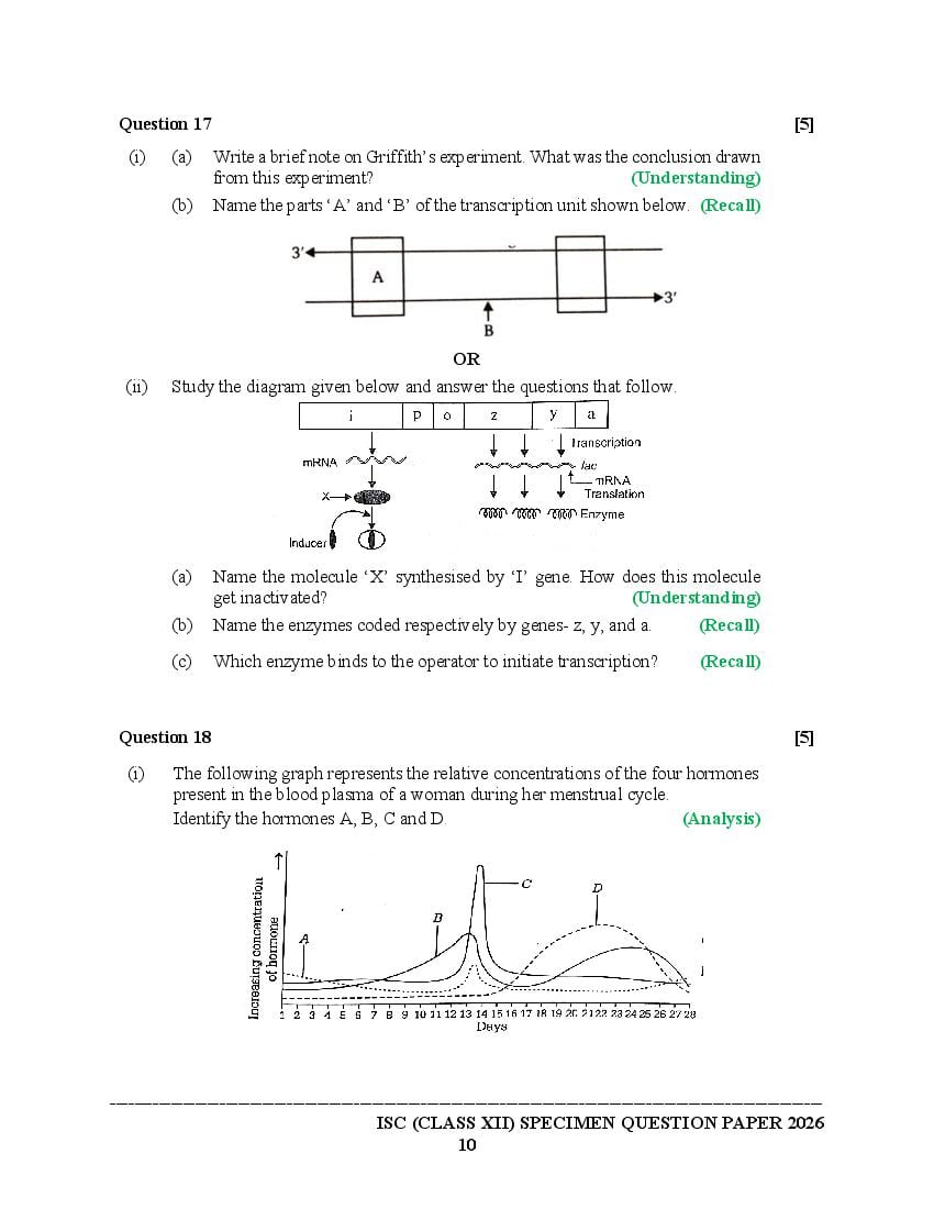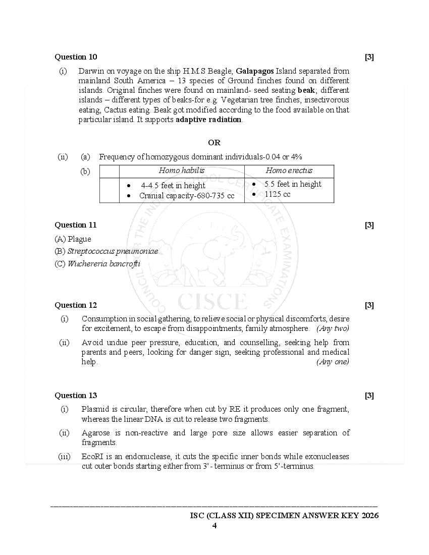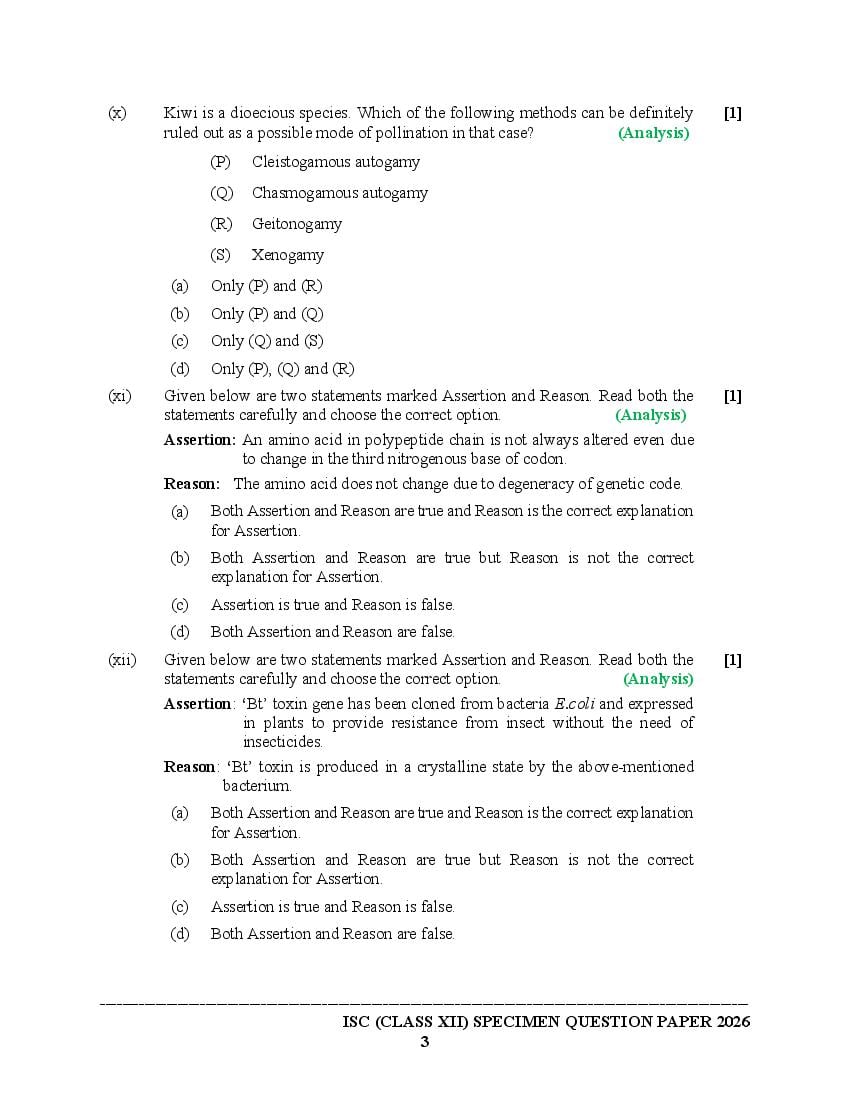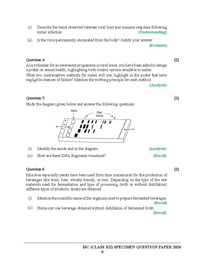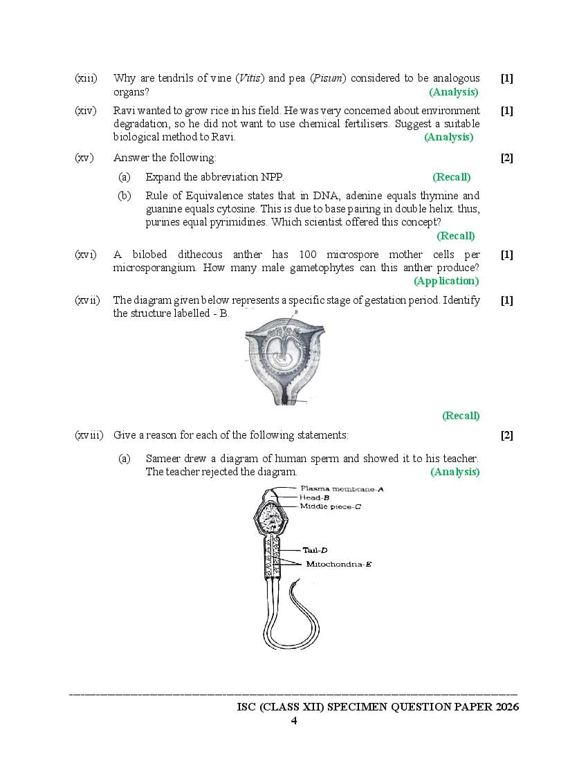 The specimen paper for ISC 2026, for Biology is now available. The direct link to download PDF of this ISC specimen paper 2026 is as follows.
