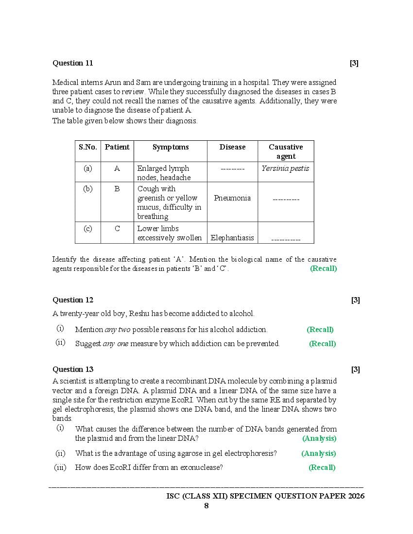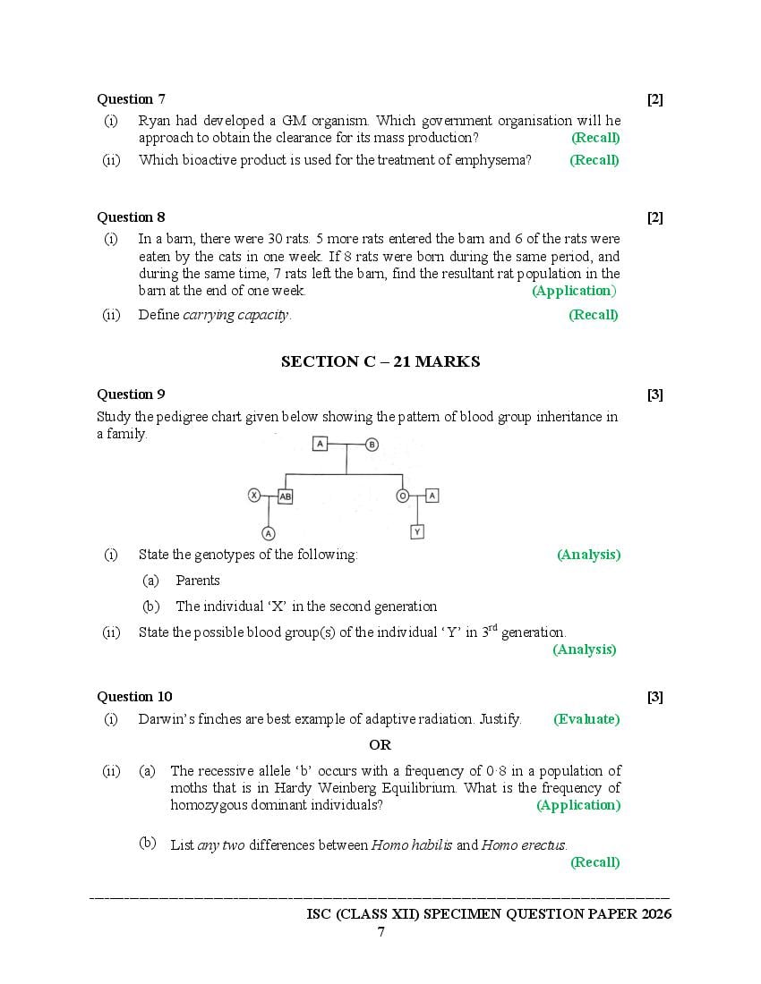 | Study Material Here | CISCE Board Specimen Paper of Class 12 Biology |