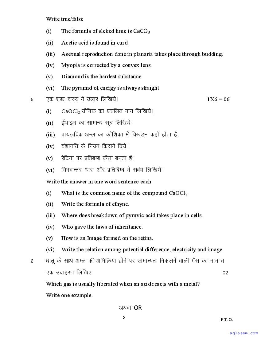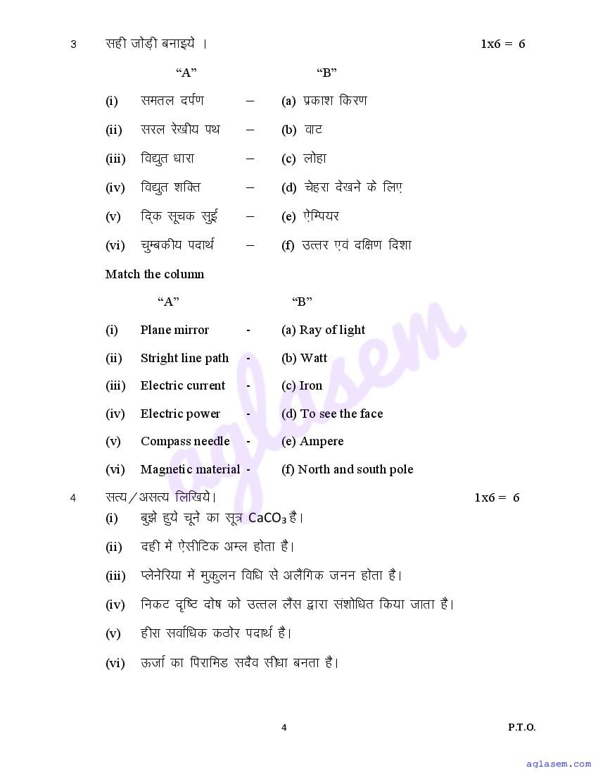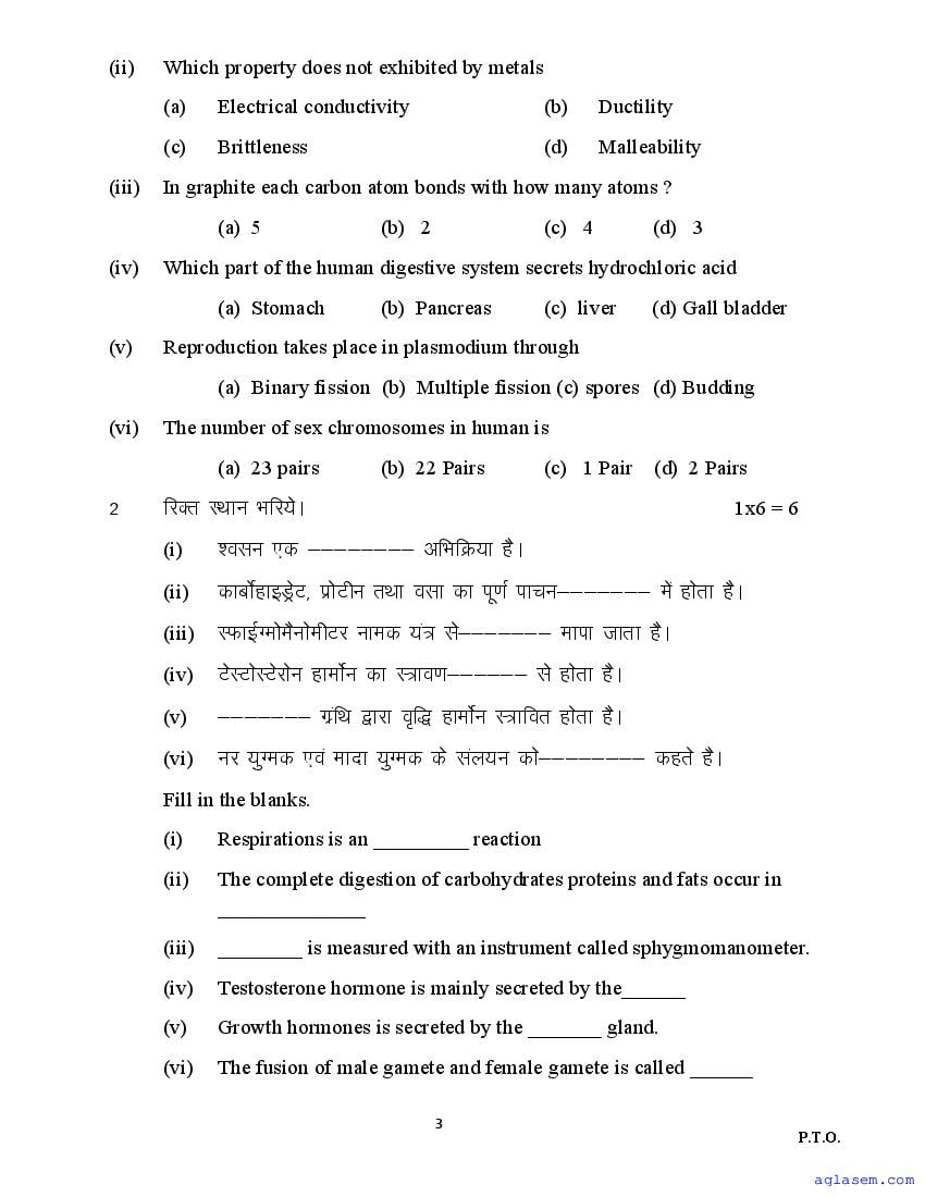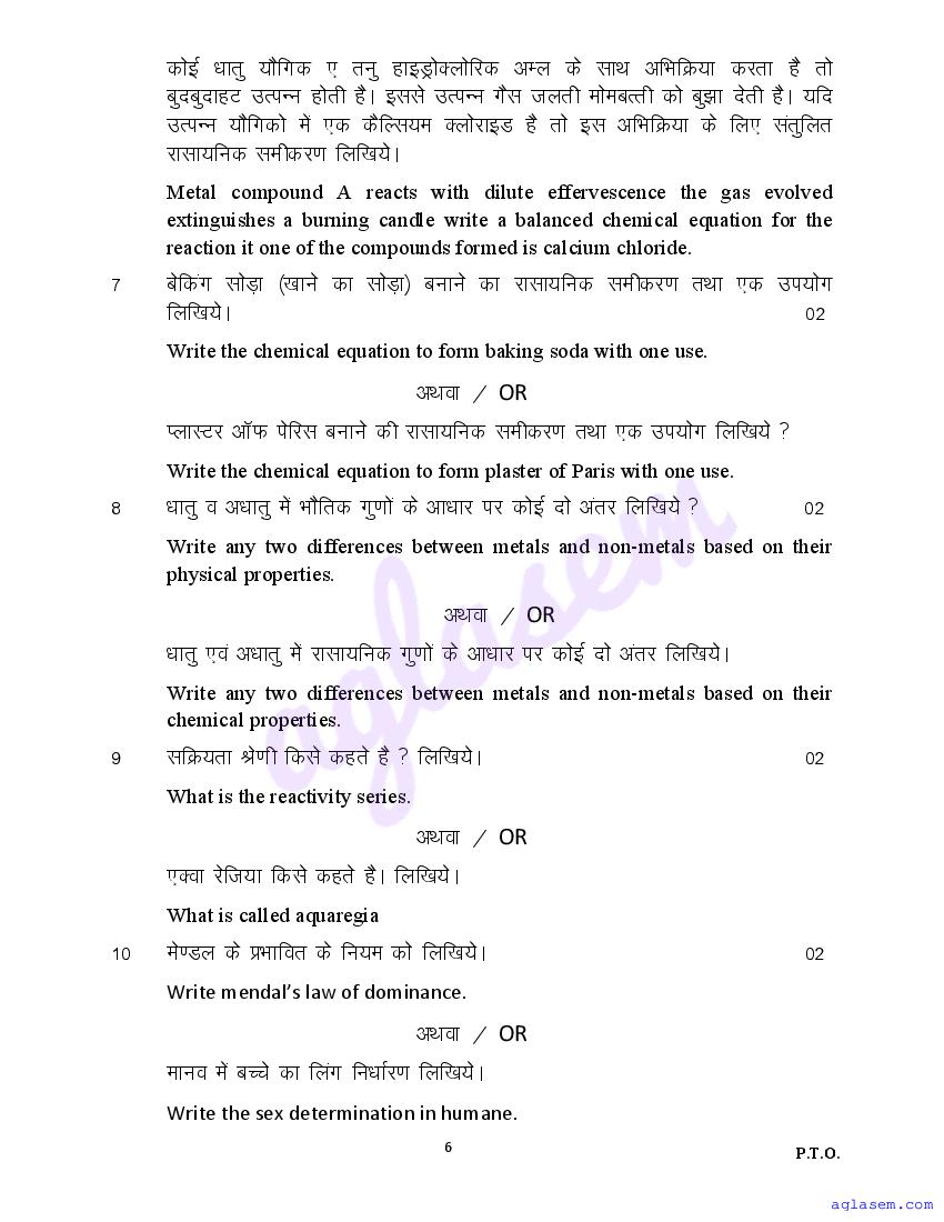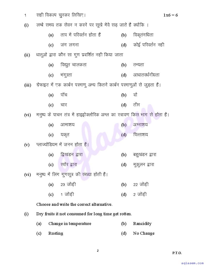 The sample question paper for class 10 Science subject is as follows. This is a part of the MP Board Sample Paper for 10th students.