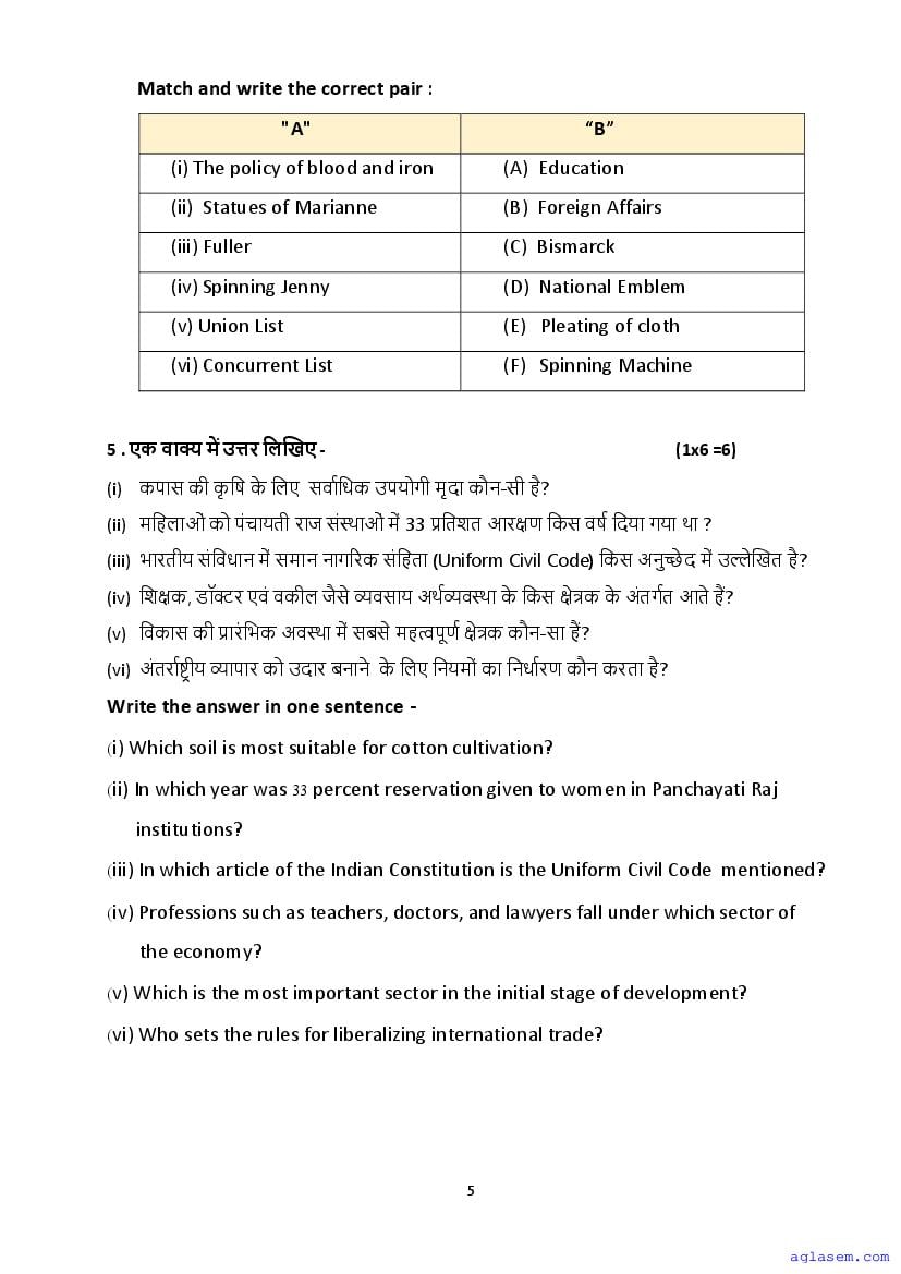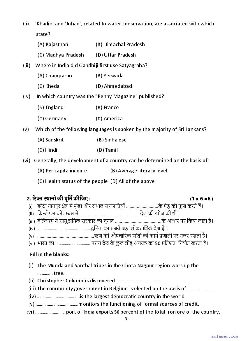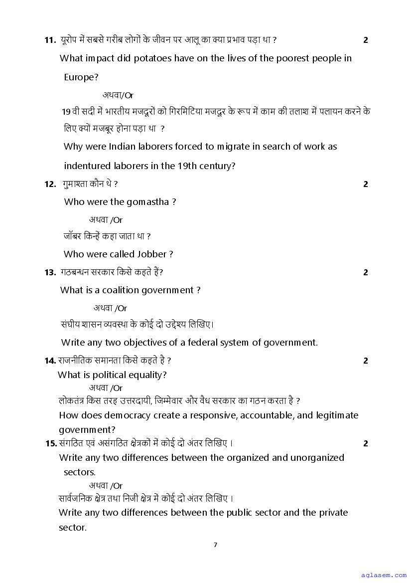 The sample question paper for class 10 Social Science subject is as follows. This is a part of the MP Board Sample Paper for 10th students.