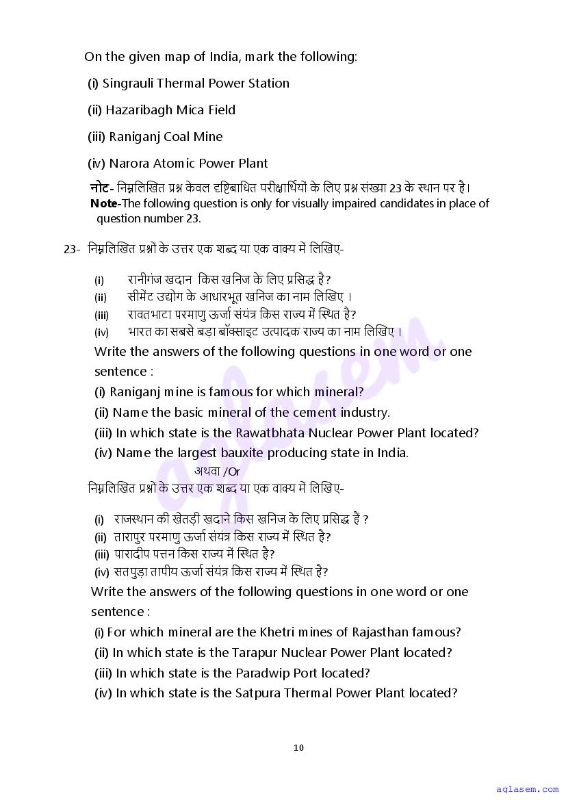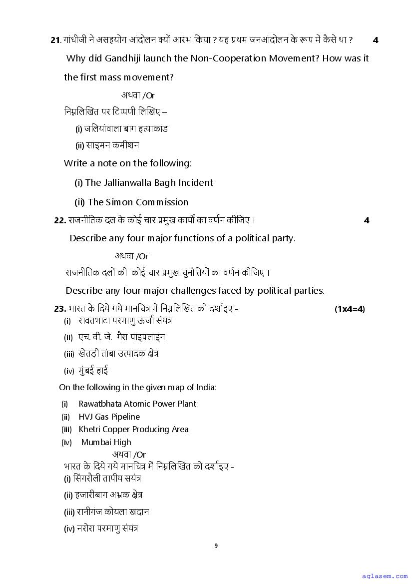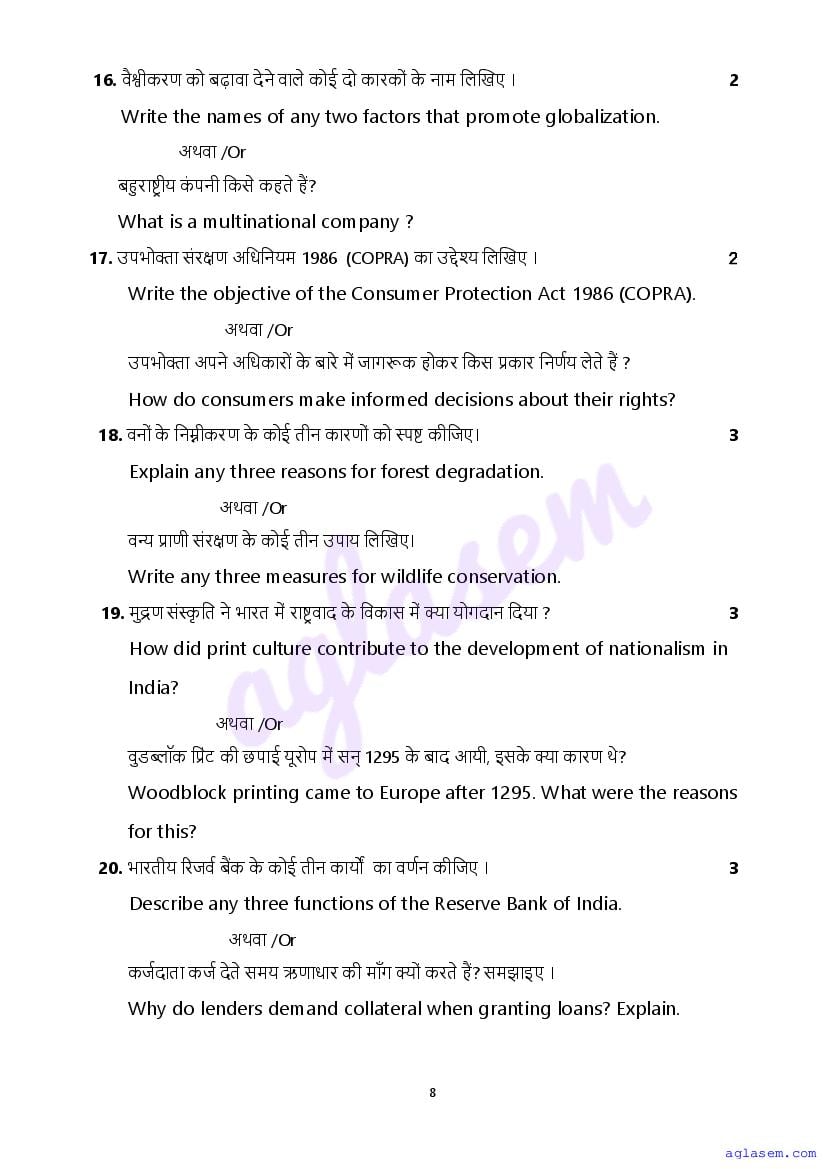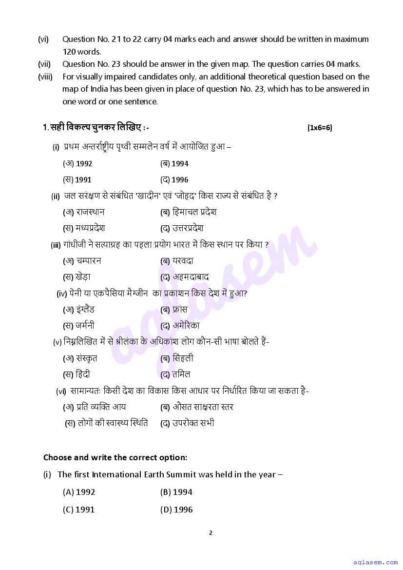 The sample question paper for class 10 Social Science subject is as follows. This is a part of the MP Board Sample Paper for 10th students.