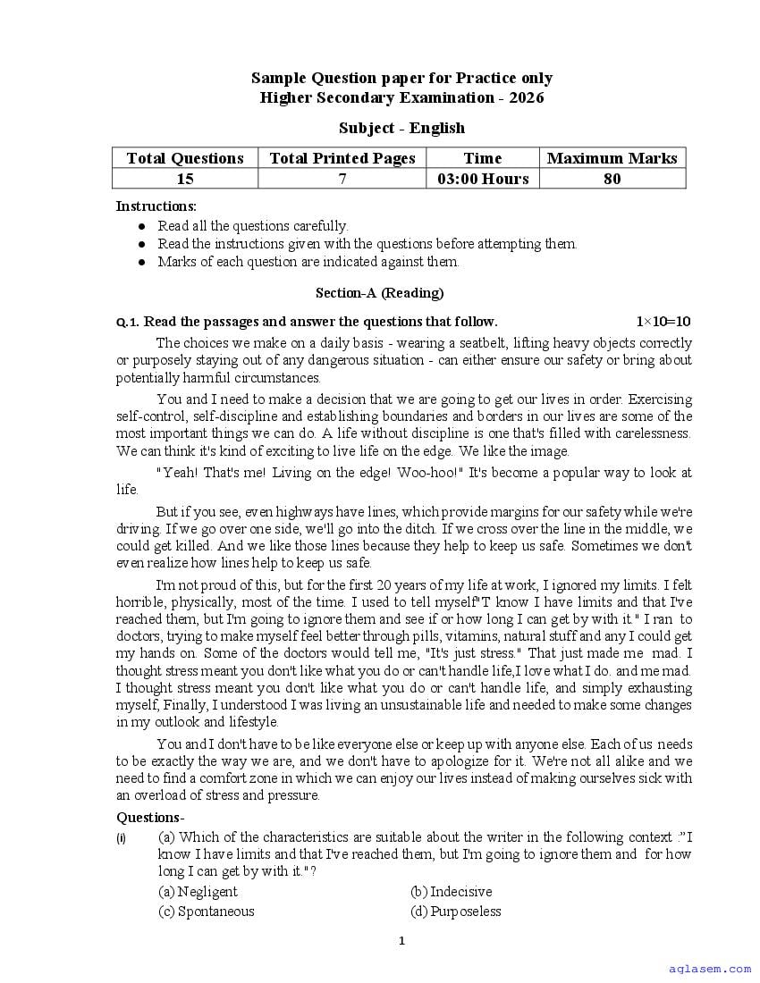 MP Board 12th English Sample Paper 2026 is published by MPBSE. If you are a class 12 student, then you can download MP Board Class 12 Sample Paper 2026 for English PDF here from aglasem. This English question paper in English medium and Hindi medium contains sample questions from the latest MPBSE class 12 syllabus. Moreover the class 12 English question paper pattern will be exactly as per this MP Board 12th sample paper. Thus you increase chances of scoring full marks in MP Board 12th result 2026 by practicing with this English model paper.