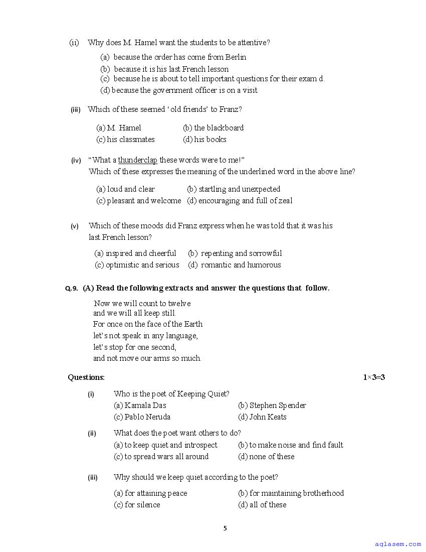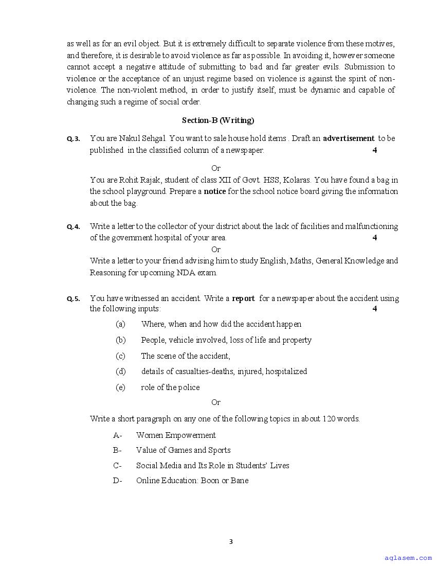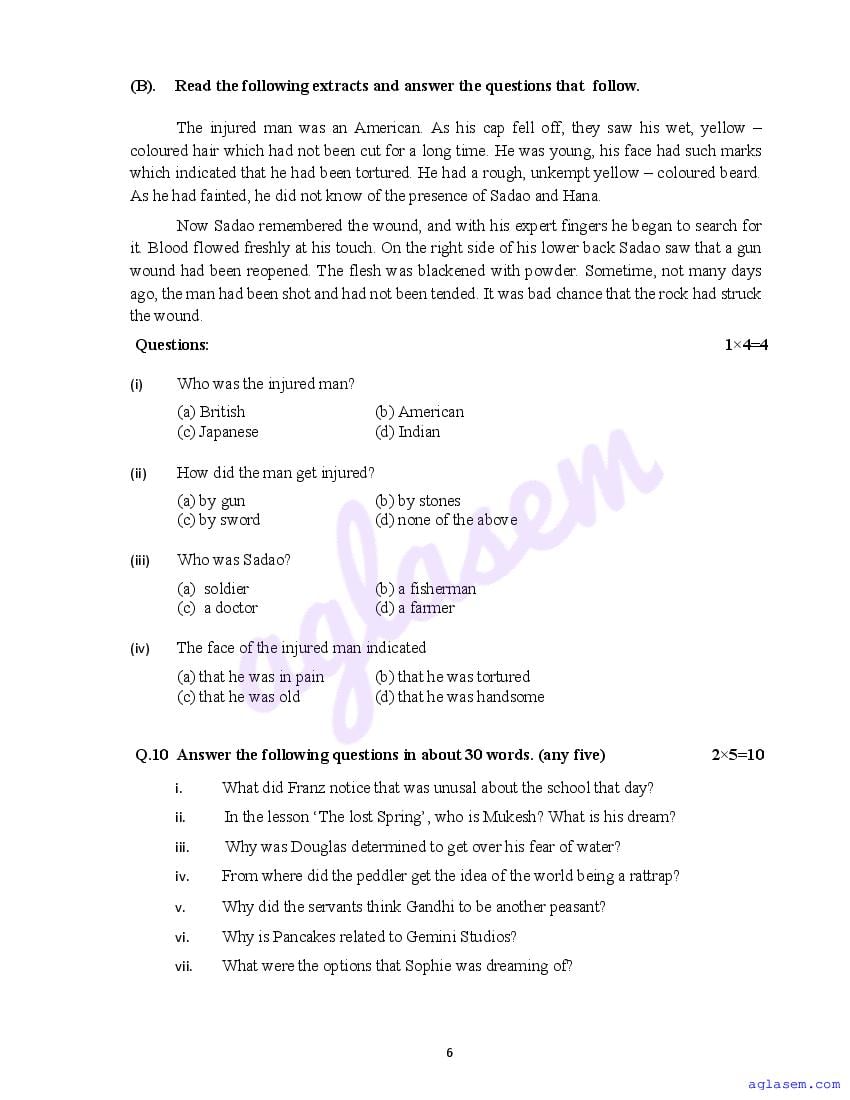 The sample question paper for class 12 English subject is as follows. This is a part of the MP Board Sample Paper for 12th students.