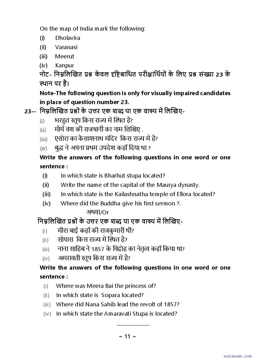 - MP Board 11th Model Paper