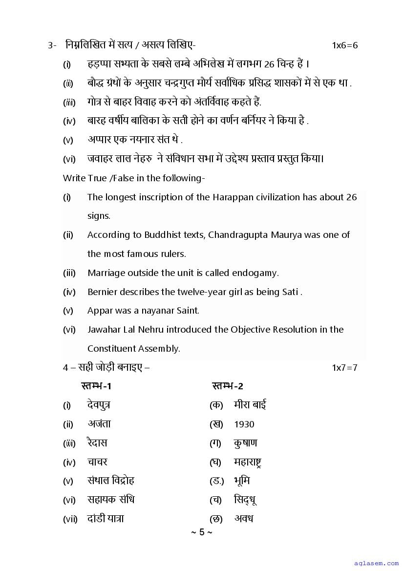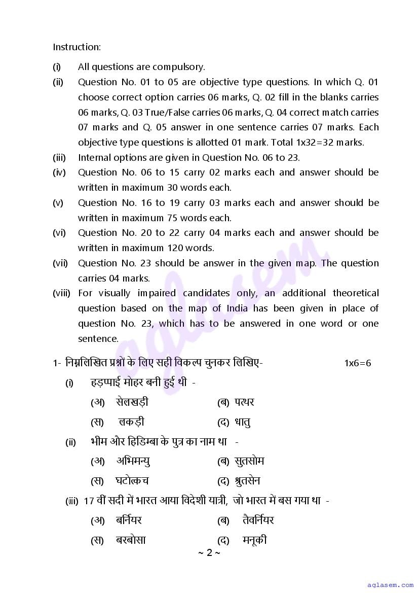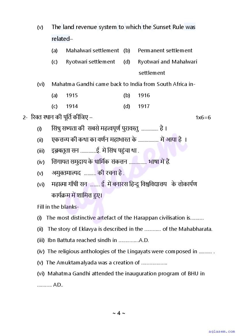 The sample question paper for class 12 History subject is as follows. This is a part of the MP Board Sample Paper for 12th students.