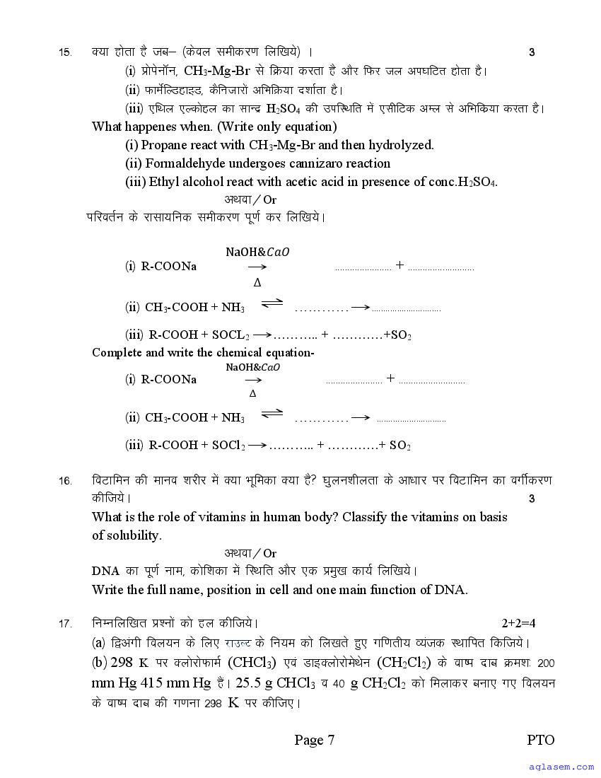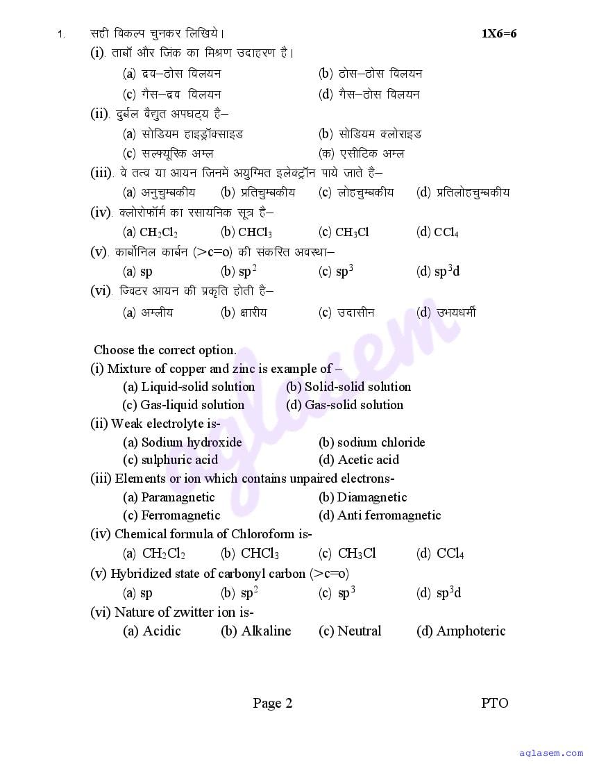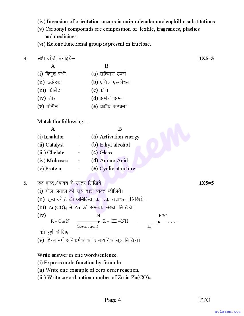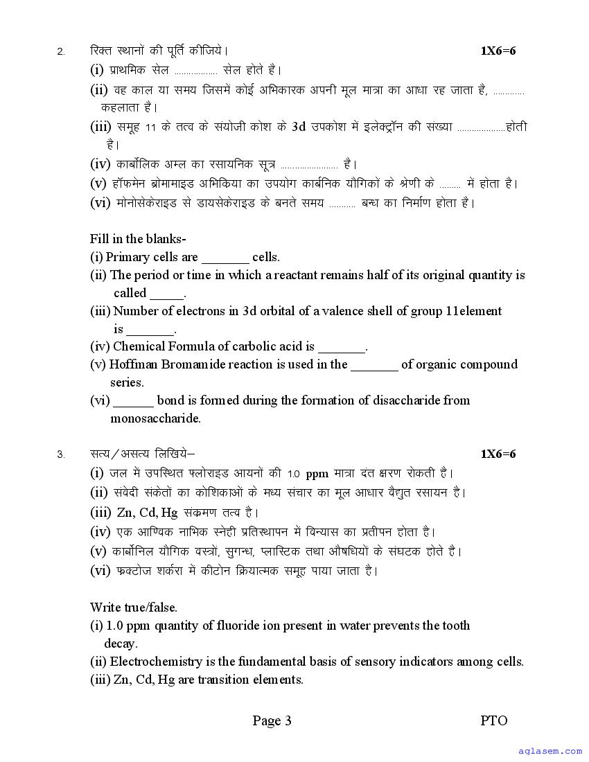 The sample question paper for class 12 Chemistry subject is as follows. This is a part of the MP Board Sample Paper for 12th students.