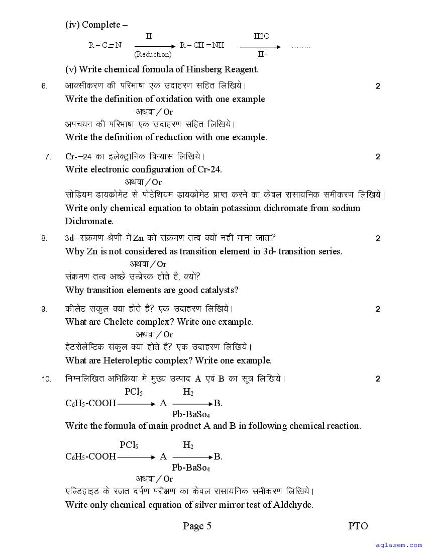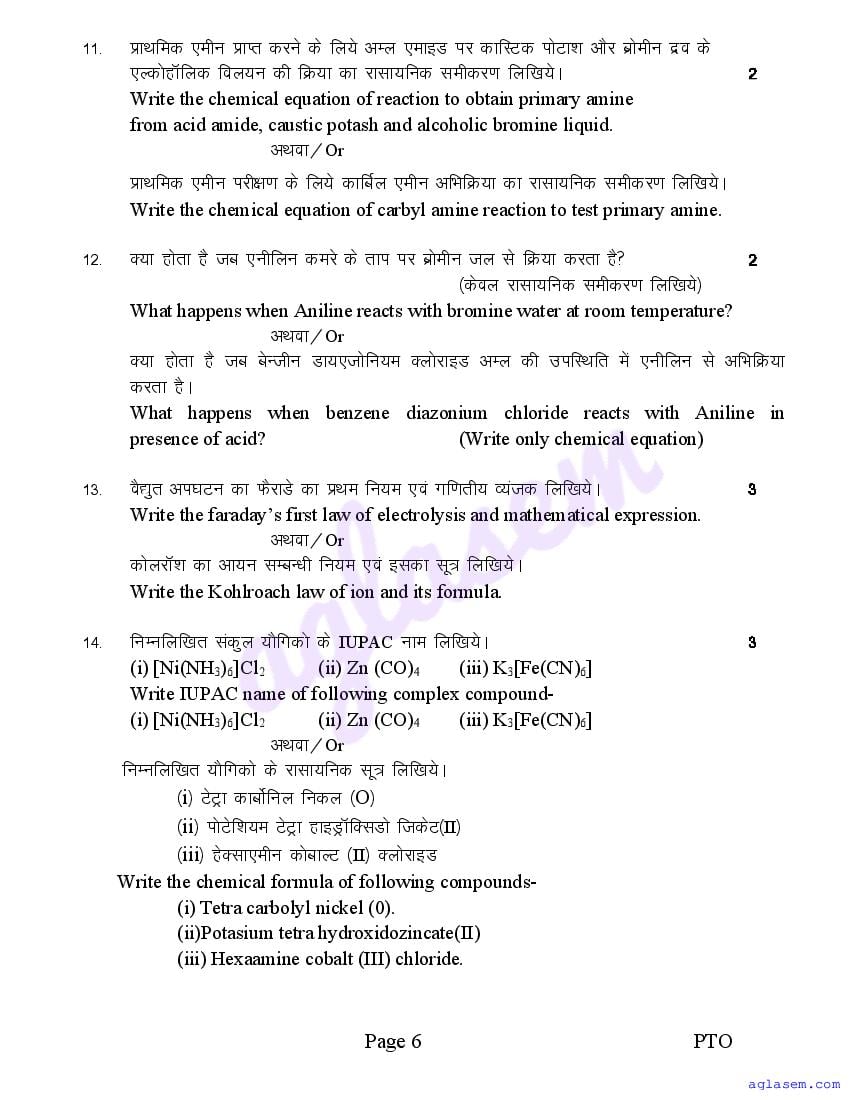 MP Board 12th Chemistry Sample Paper 2026 is published by MPBSE. If you are a class 12 student, then you can download MP Board Class 12 Sample Paper 2026 for Chemistry PDF here from aglasem. This Chemistry question paper in English medium and Hindi medium contains sample questions from the latest MPBSE class 12 syllabus. Moreover the class 12 Chemistry question paper pattern will be exactly as per this MP Board 12th sample paper. Thus you increase chances of scoring full marks in MP Board 12th result 2026 by practicing with this Chemistry model paper.