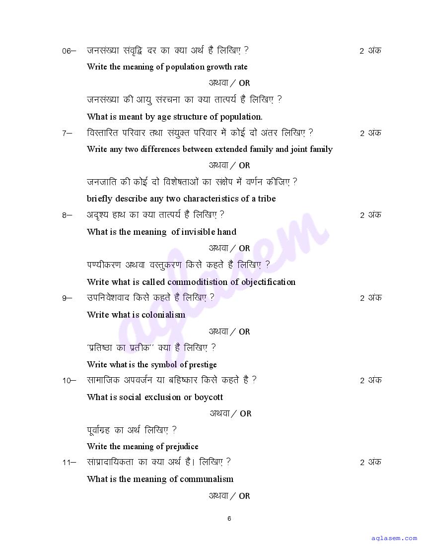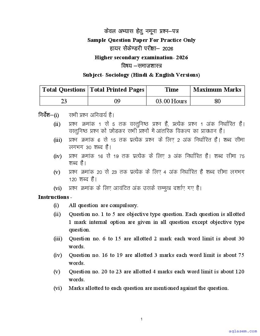 MP Board 12th Sociology Sample Paper 2026 is published by MPBSE. If you are a class 12 student, then you can download MP Board Class 12 Sample Paper 2026 for Sociology PDF here from aglasem. This Sociology question paper in English medium and Hindi medium contains sample questions from the latest MPBSE class 12 syllabus. Moreover the class 12 Sociology question paper pattern will be exactly as per this MP Board 12th sample paper. Thus you increase chances of scoring full marks in MP Board 12th result 2026 by practicing with this Sociology model paper.