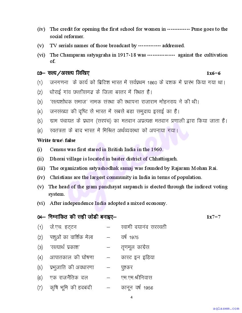 The sample question paper for class 12 Sociology subject is as follows. This is a part of the MP Board Sample Paper for 12th students.
