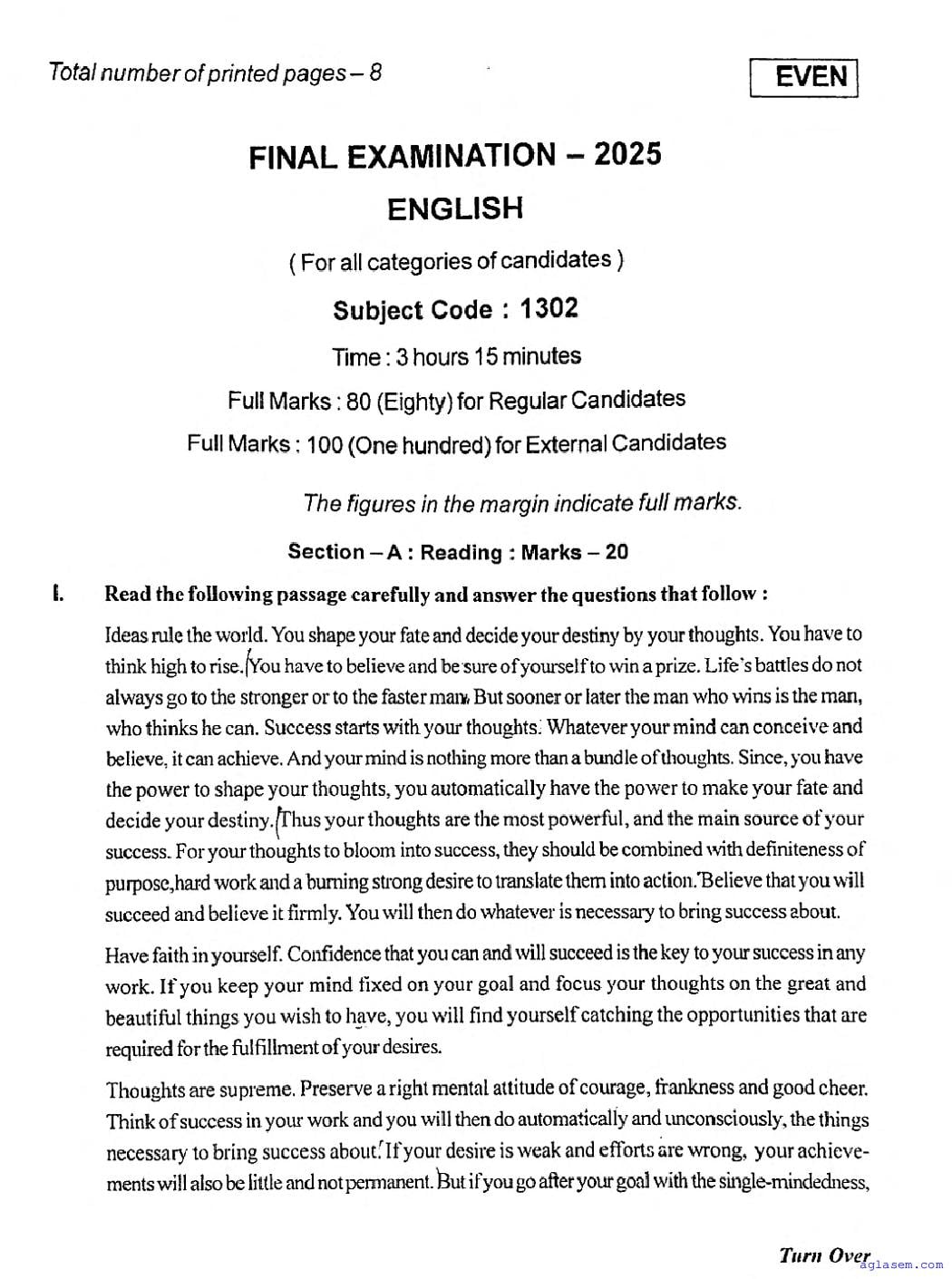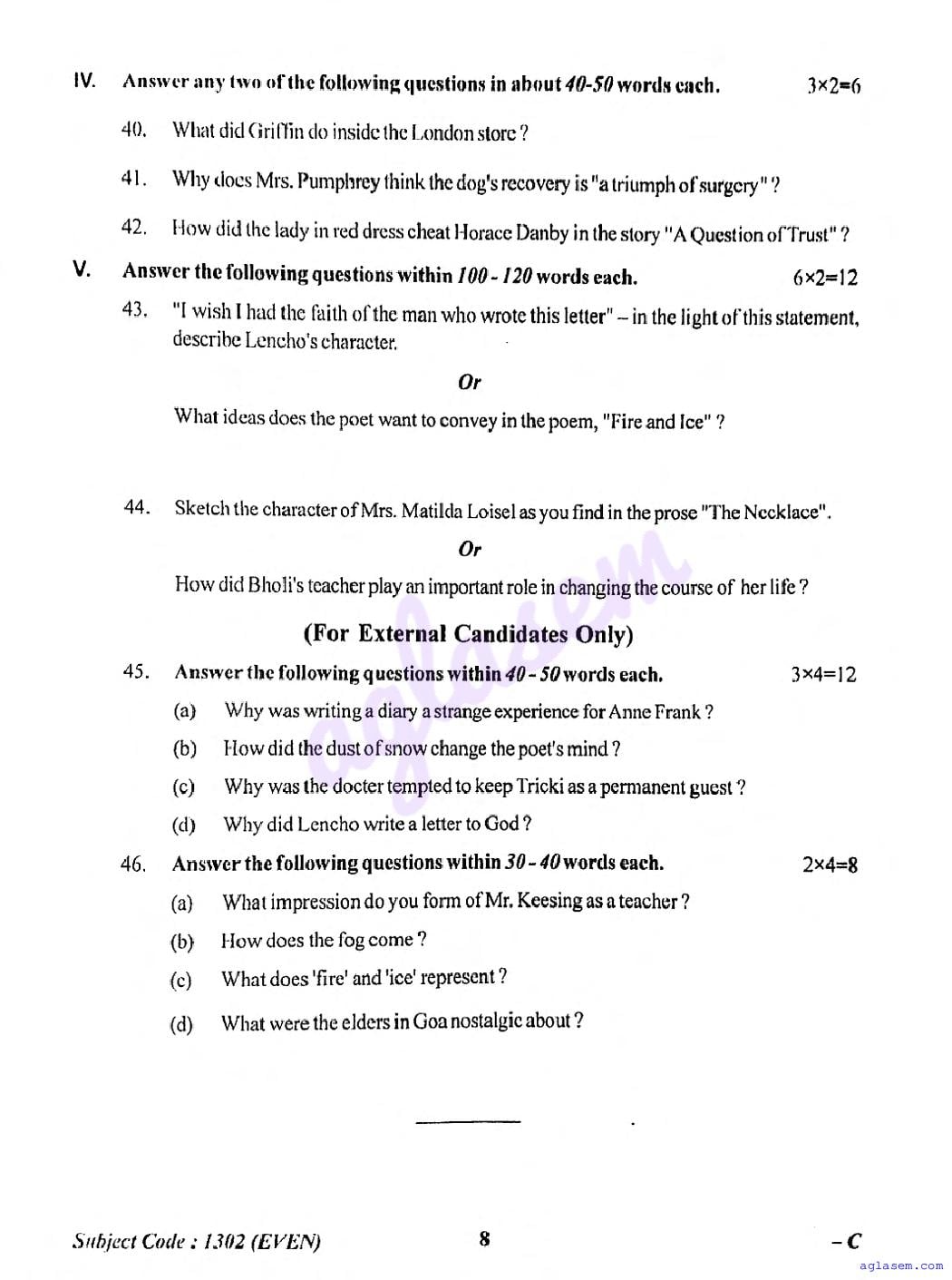 To help students achieve better results, we have provided the TBSE Madhyamik English Question Paper here at aglasem.com. This question paper can be downloaded in PDF format for offline practice.