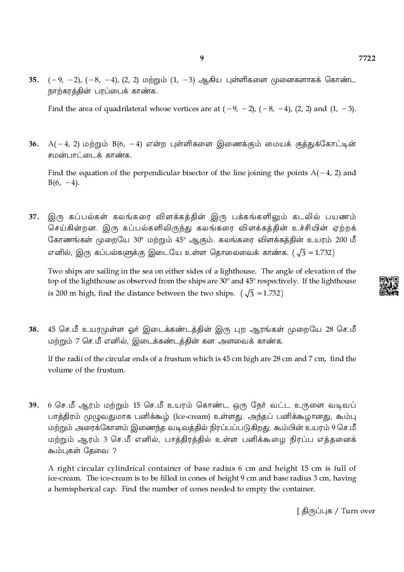 The TN Board Previous Year Question Paper for SSLC (Class 10) Maths is as follows.