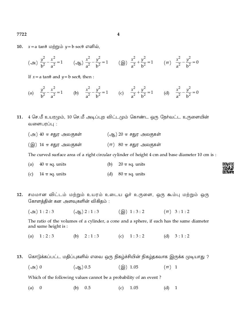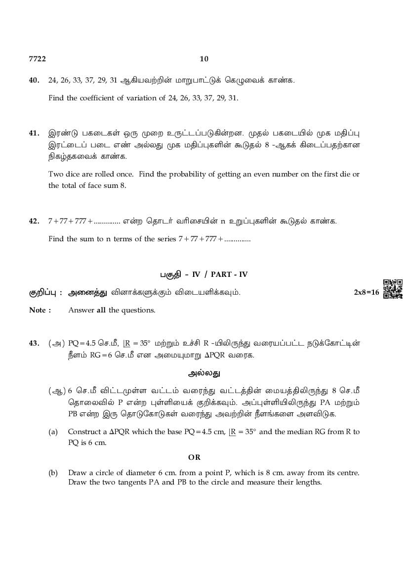 TN 10th Maths Public Exam Question Paper 2024 PDF