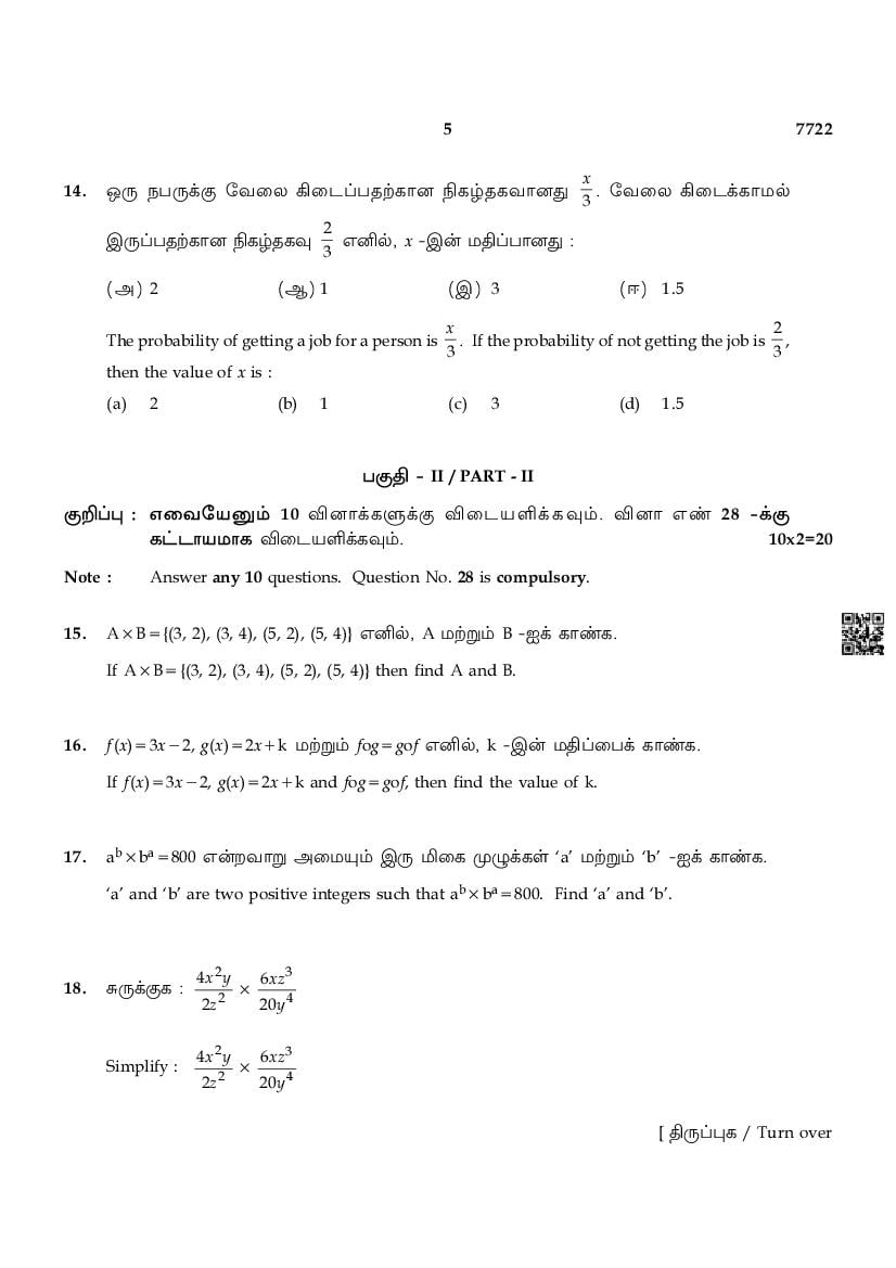 | More Annual Exam Question Papers of This Class | Tamil Nadu Board Previous Year Question Paper of Class 10 |