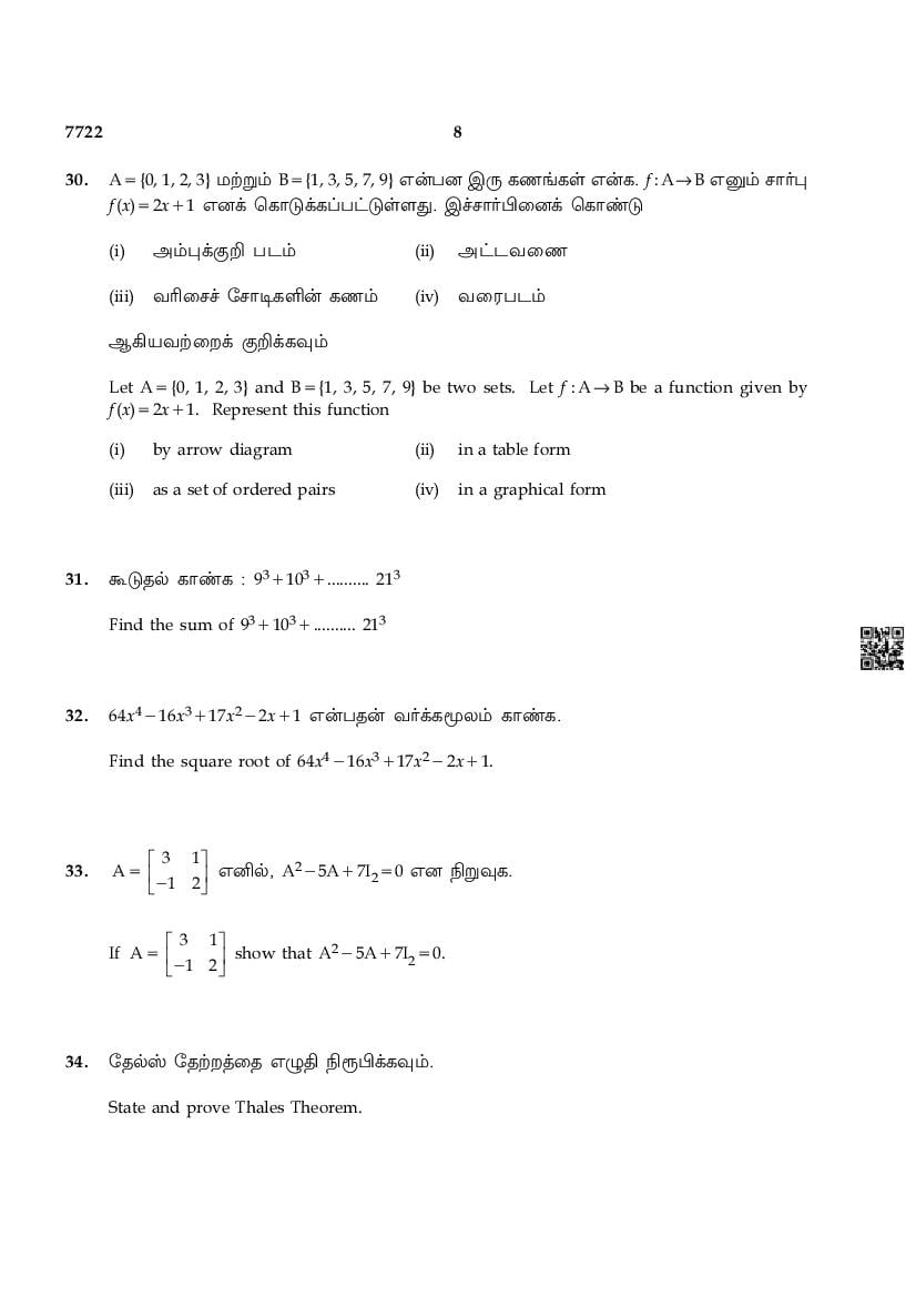 | Educational Resource Here | Tamil Nadu Board Previous Year Question Paper of Class 10 Maths |