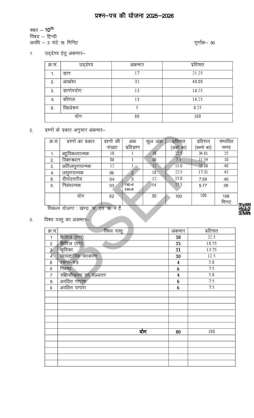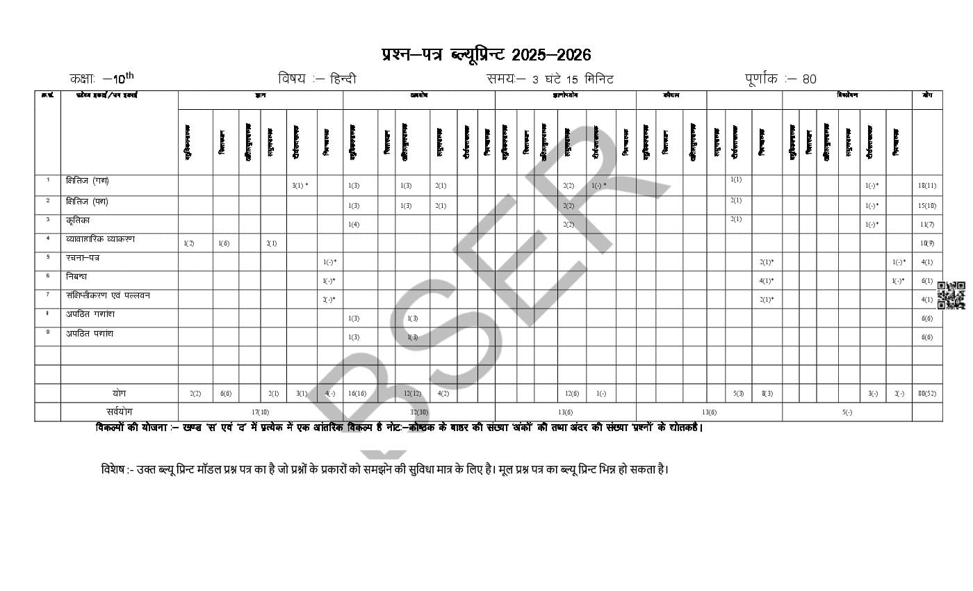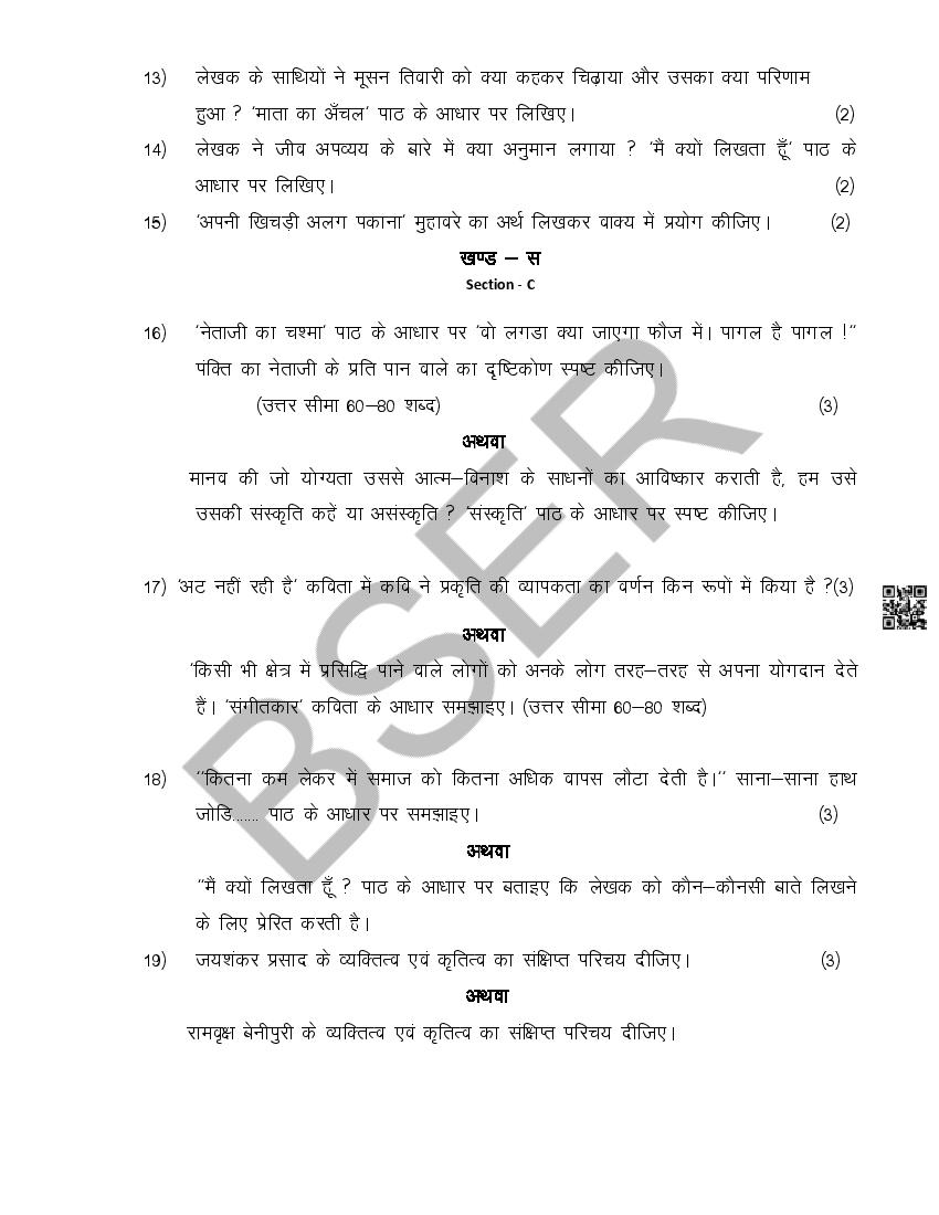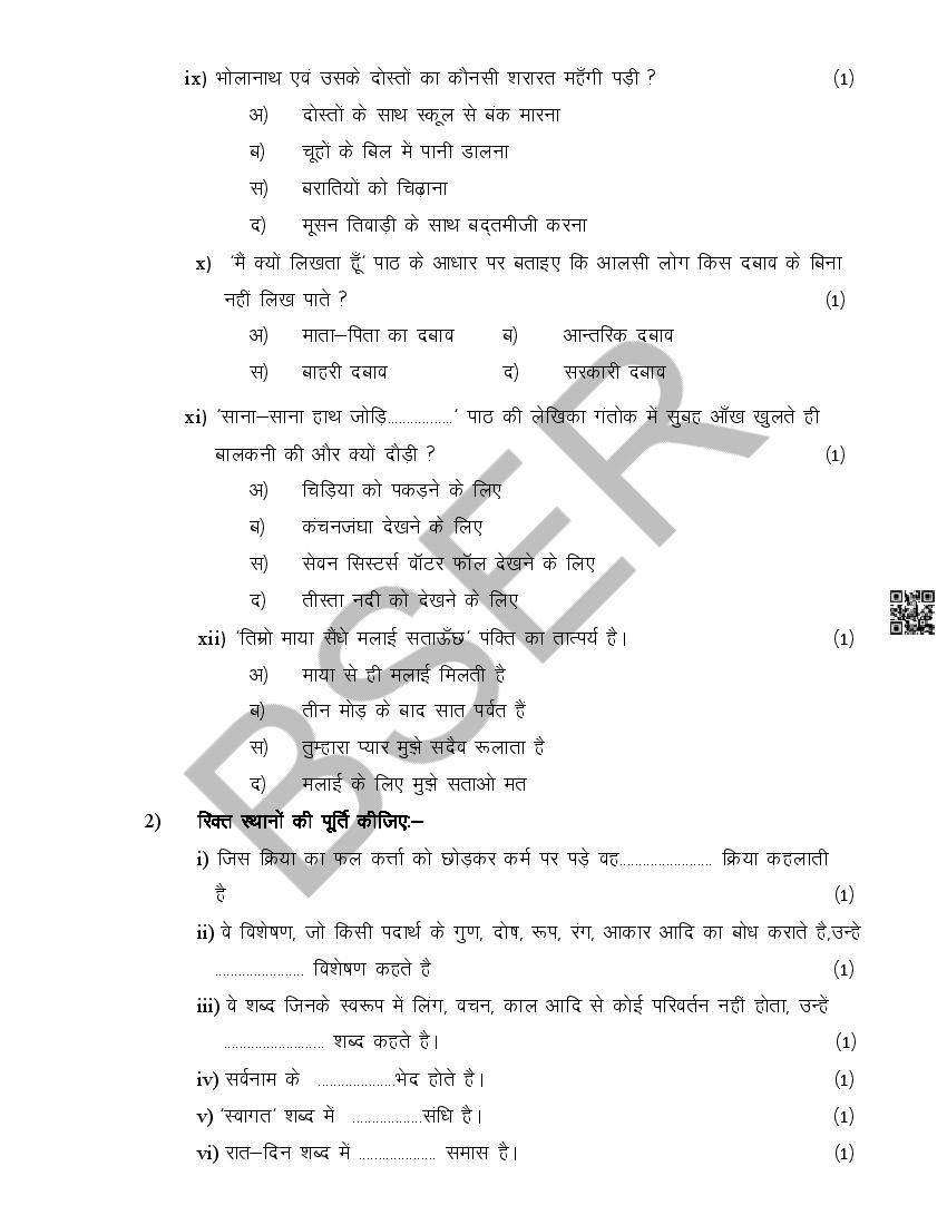 The Rajasthan Board model paper for class 10 Hindi is as follows.