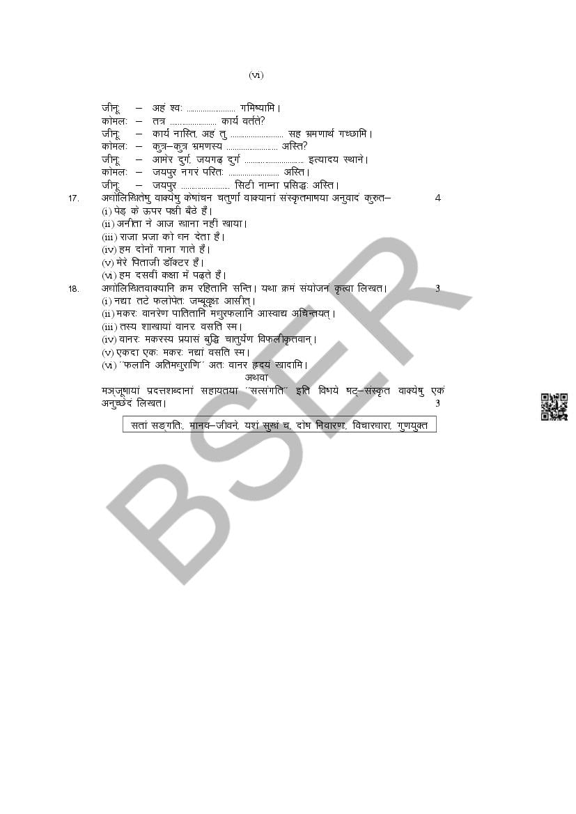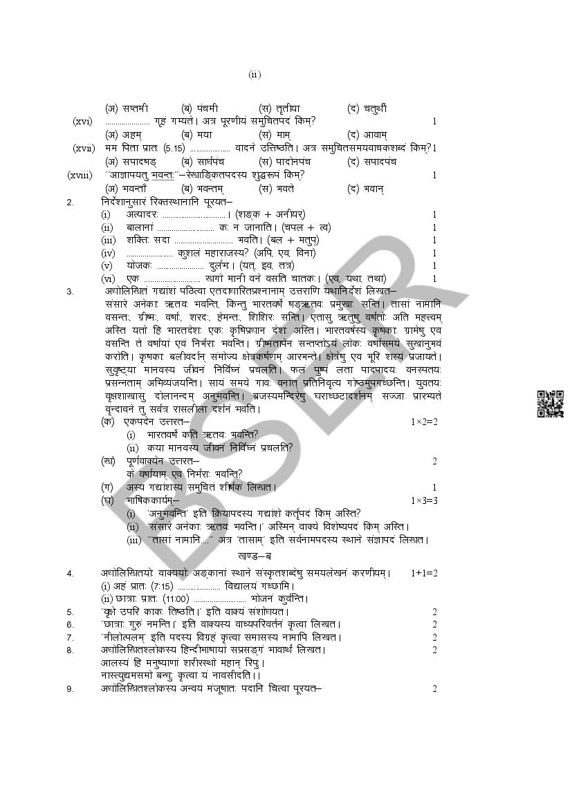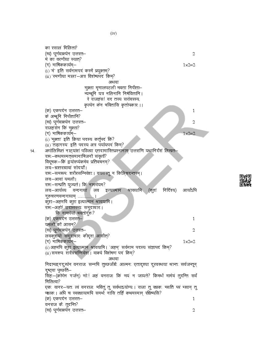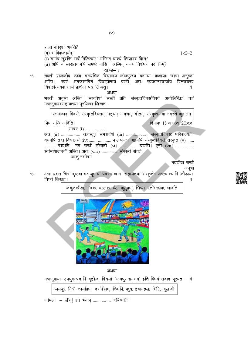 The Rajasthan Board model paper for class 10 Sanskrit is as follows.