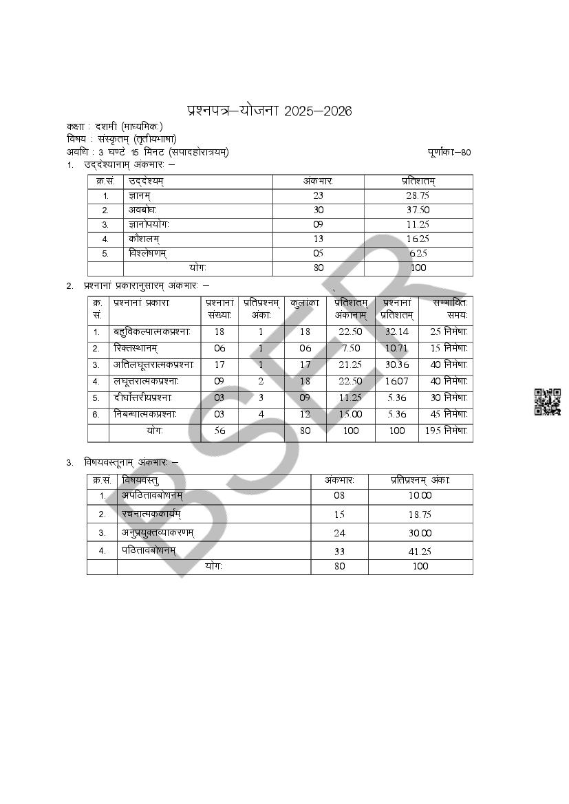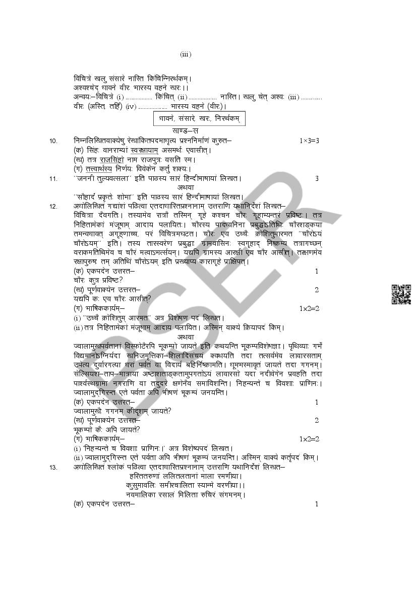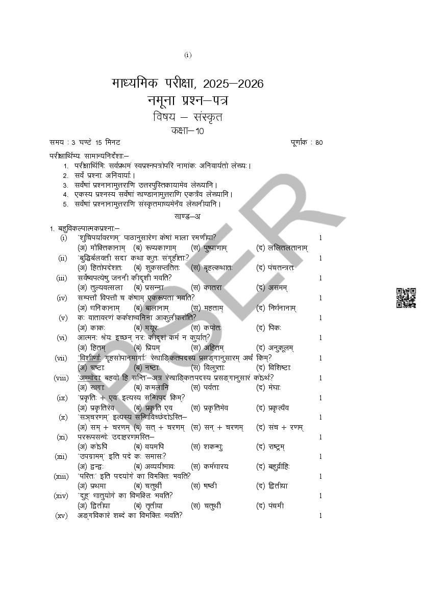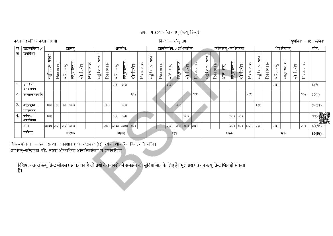 The Rajasthan Board model paper for class 10 Sanskrit is as follows.