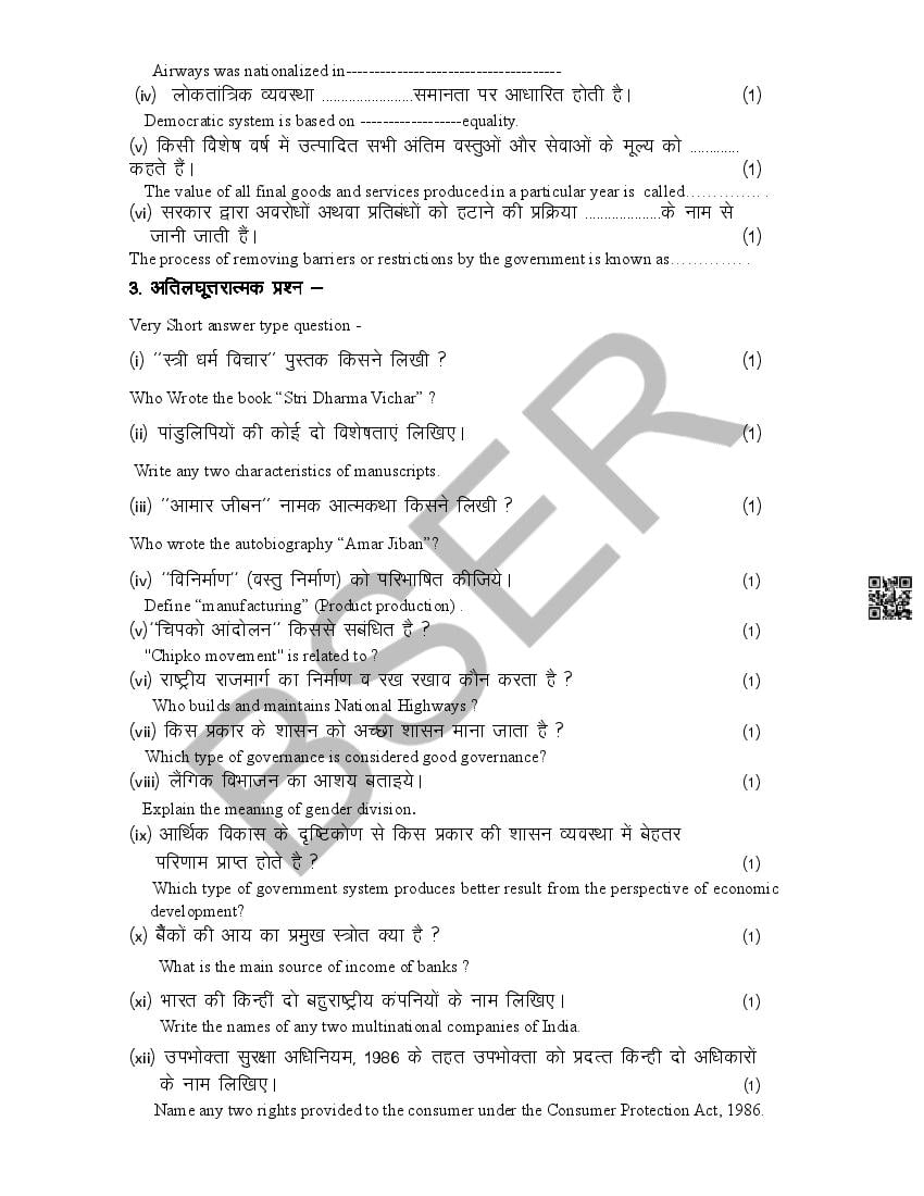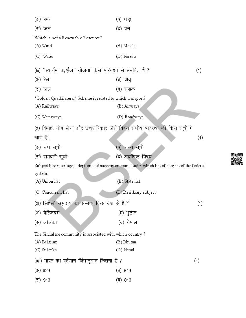 RBSE Class 10 Social Science Model Paper 20245 PDF