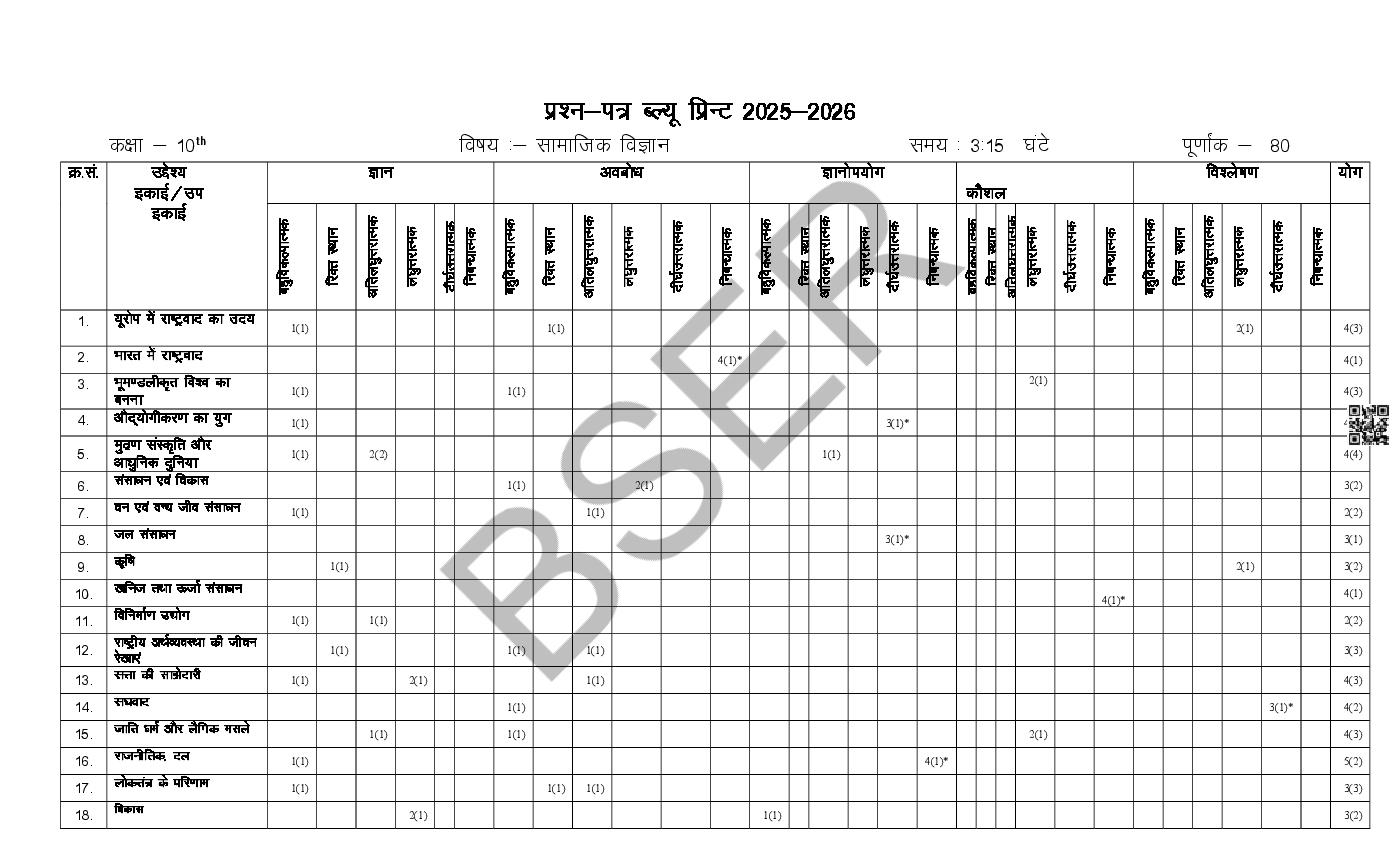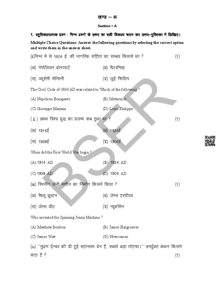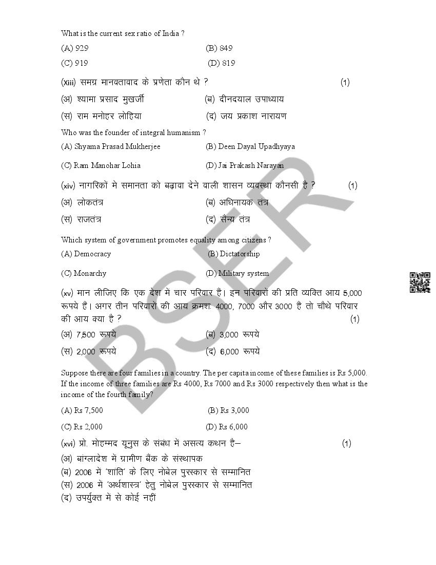 The Rajasthan Board model paper for class 10 Social Science is as follows.