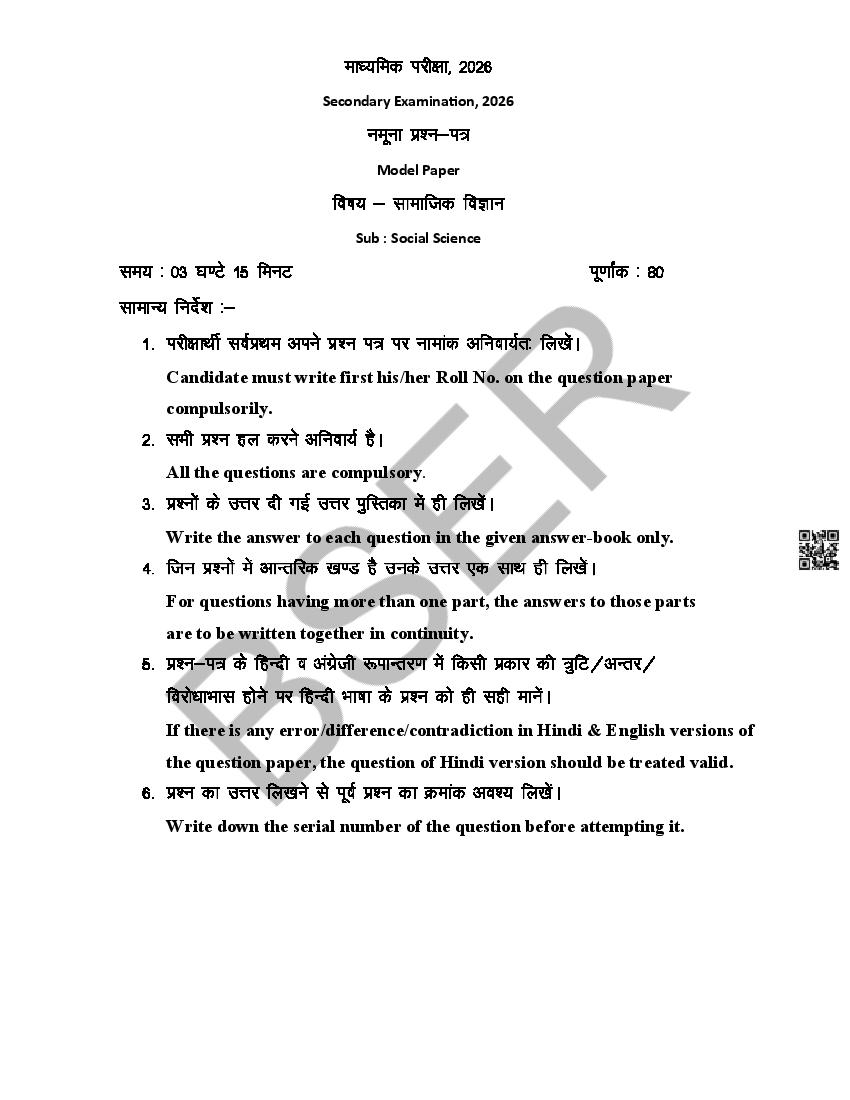 If you have any queries on RBSE Class 10 Social Science Model Paper 2026, then please ask in comments below.