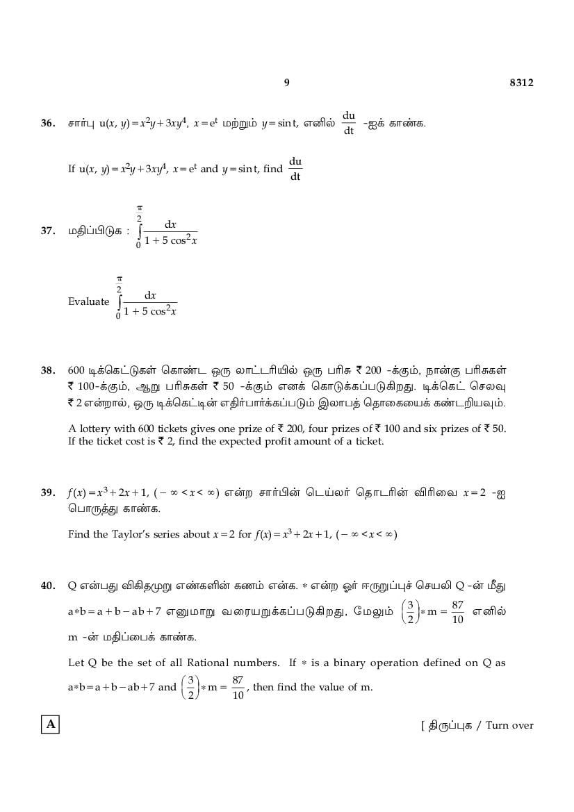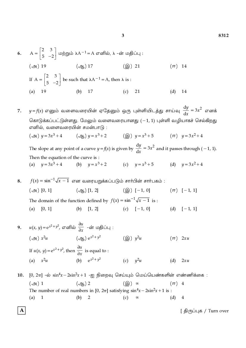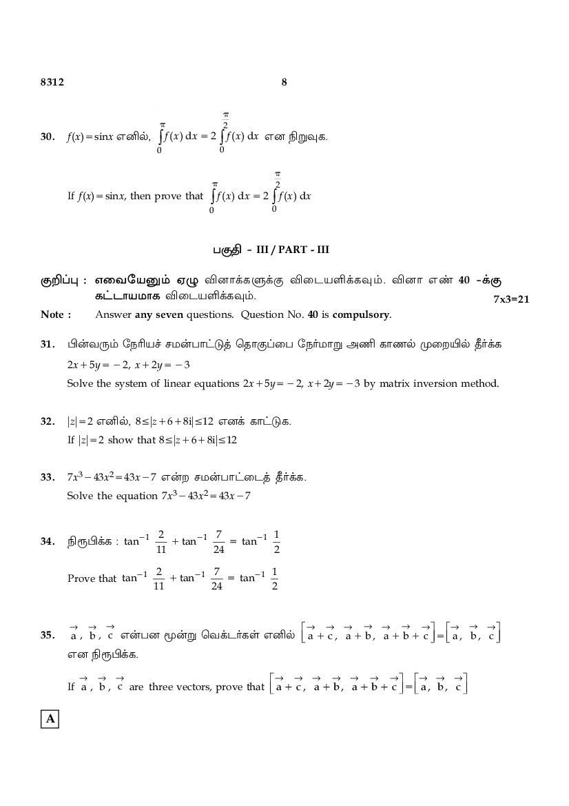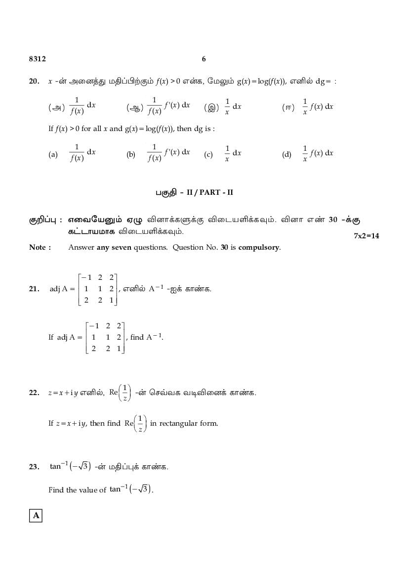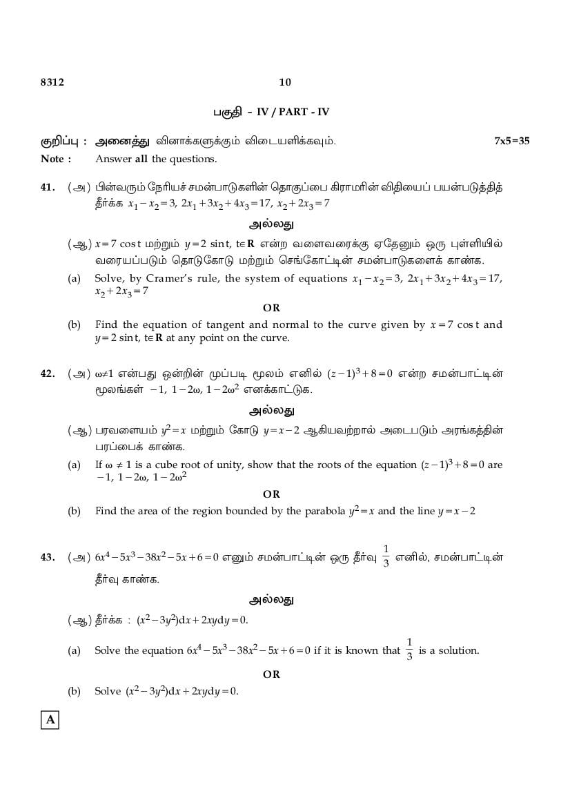 | Educational Resource Here | Tamil Nadu Board Previous Year Question Paper of Class 12 Maths |