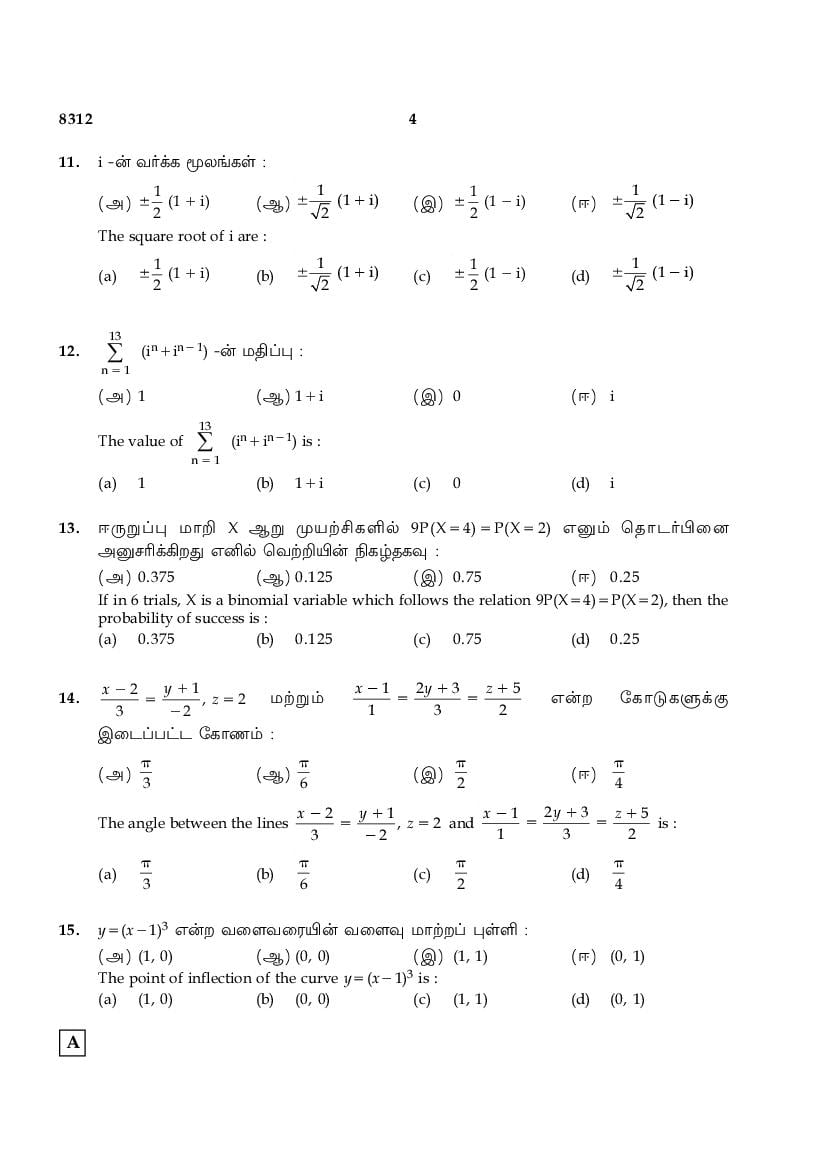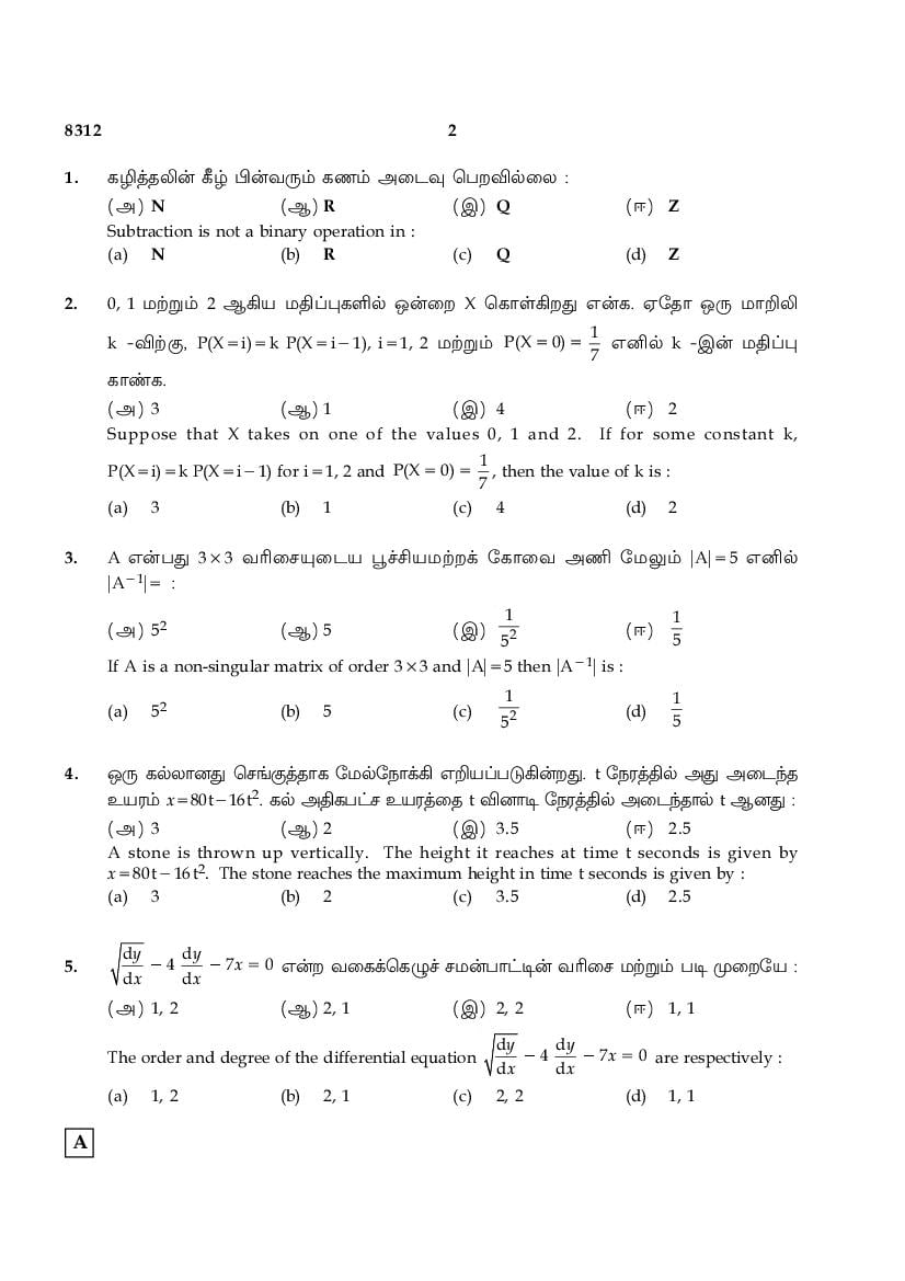 The TN Board Previous Year Question Paper for HSE (+2) (Class 12) Maths is as follows.