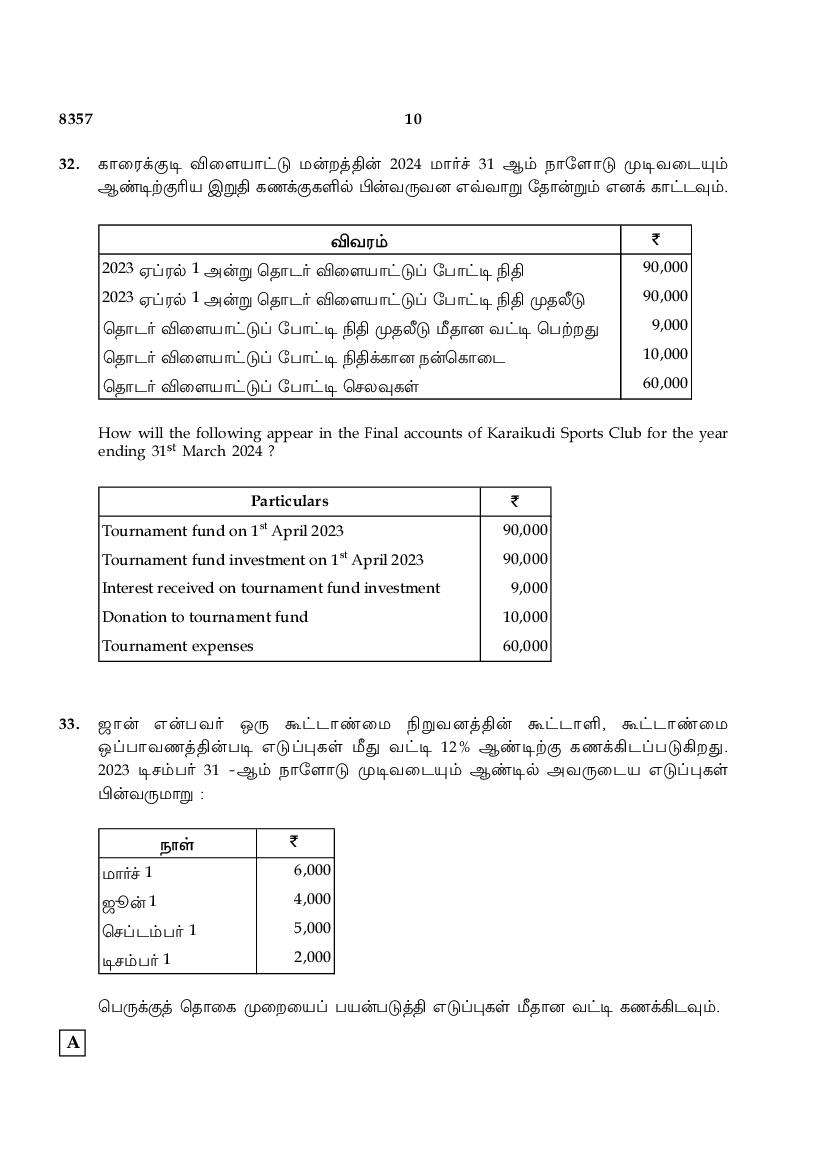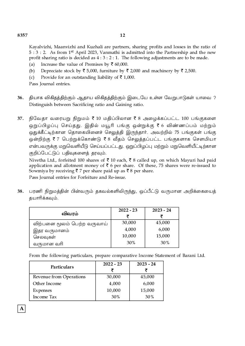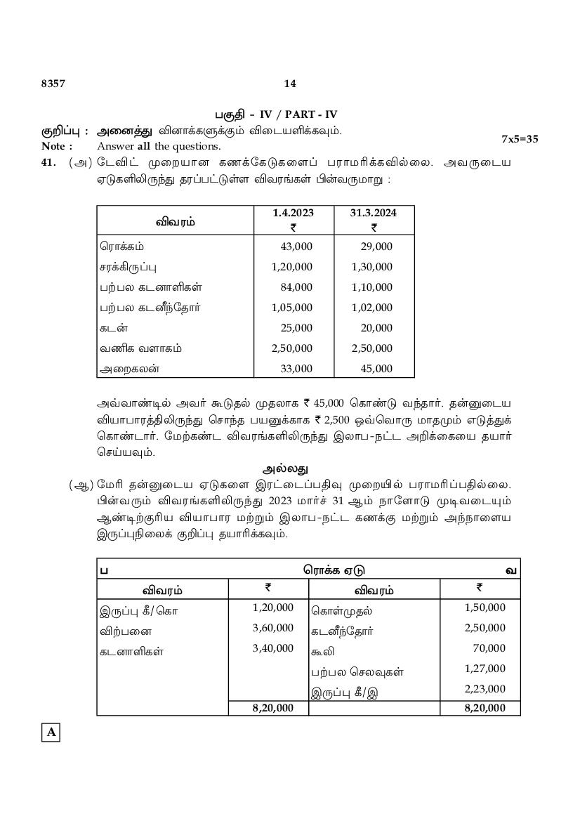 TN 12th Public Exam Accountancy Question Paper 2024 PDF Download Link – Click Here to Download 2024 Question Paper