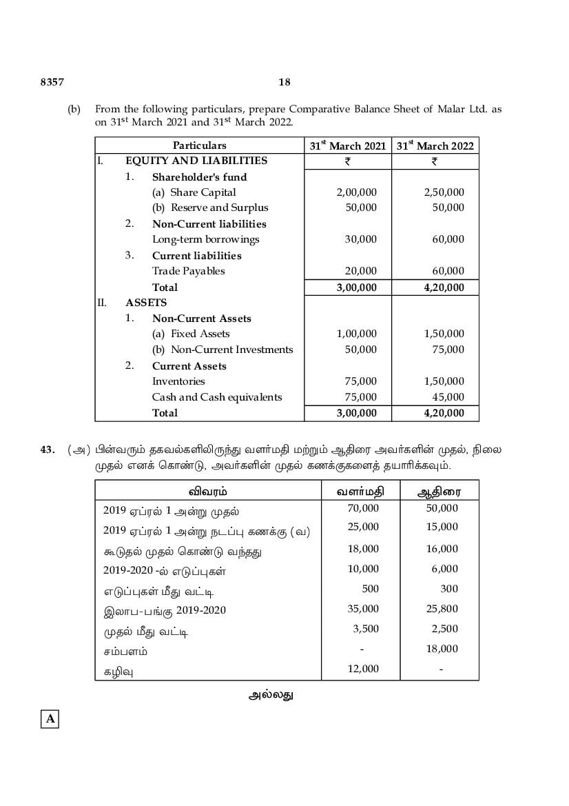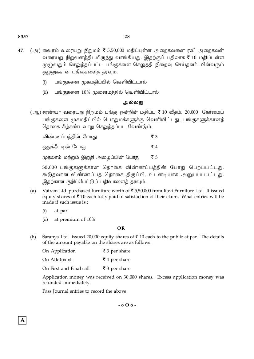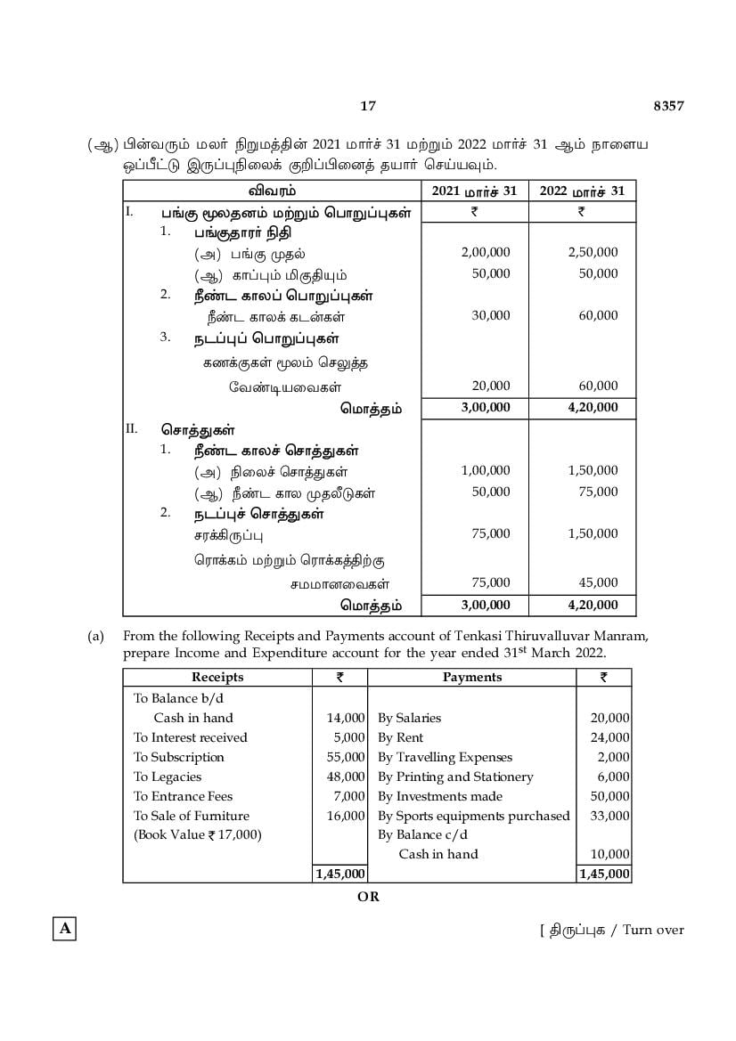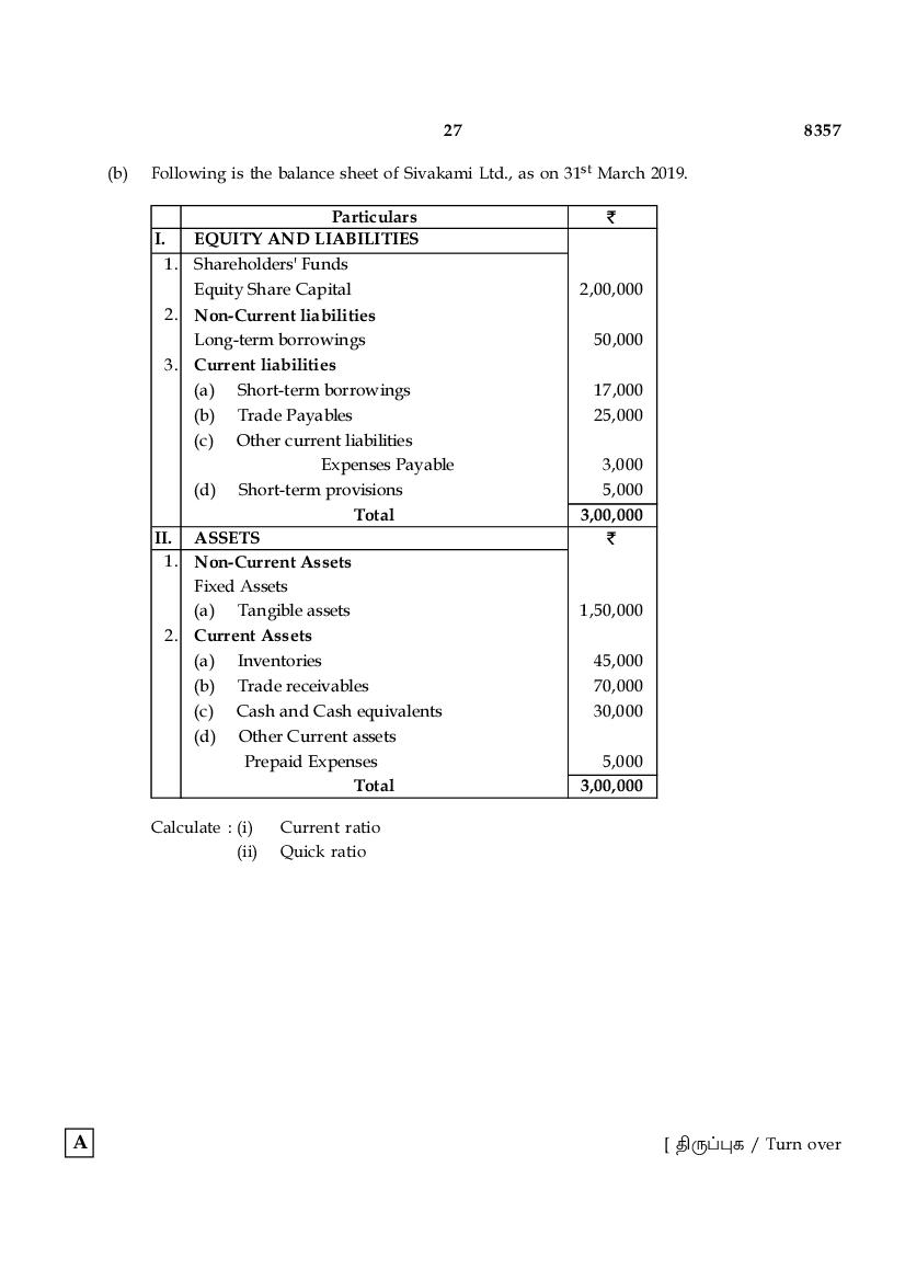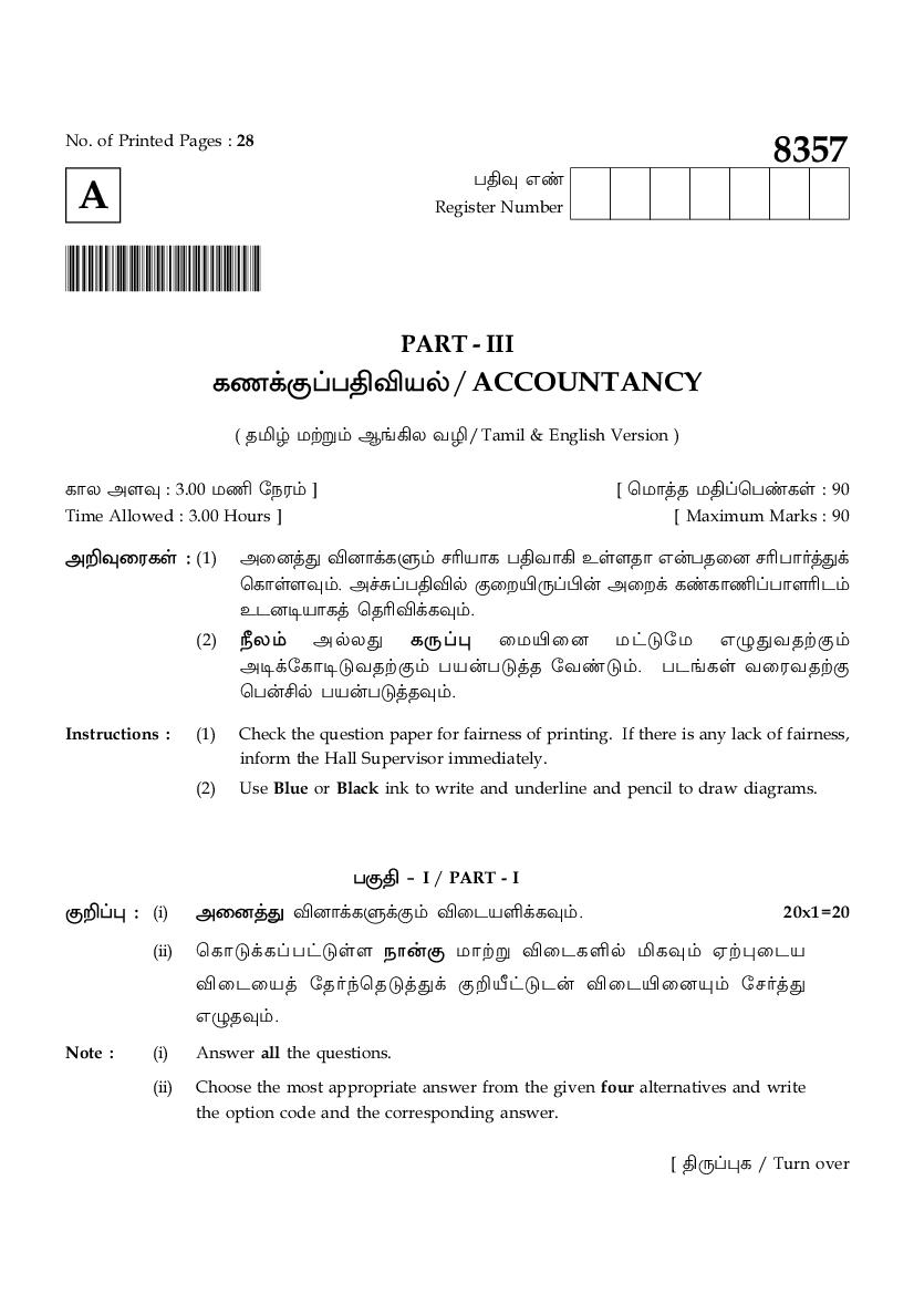 | Educational Resource Here | Tamil Nadu Board Previous Year Question Paper of Class 12 Accountancy |
